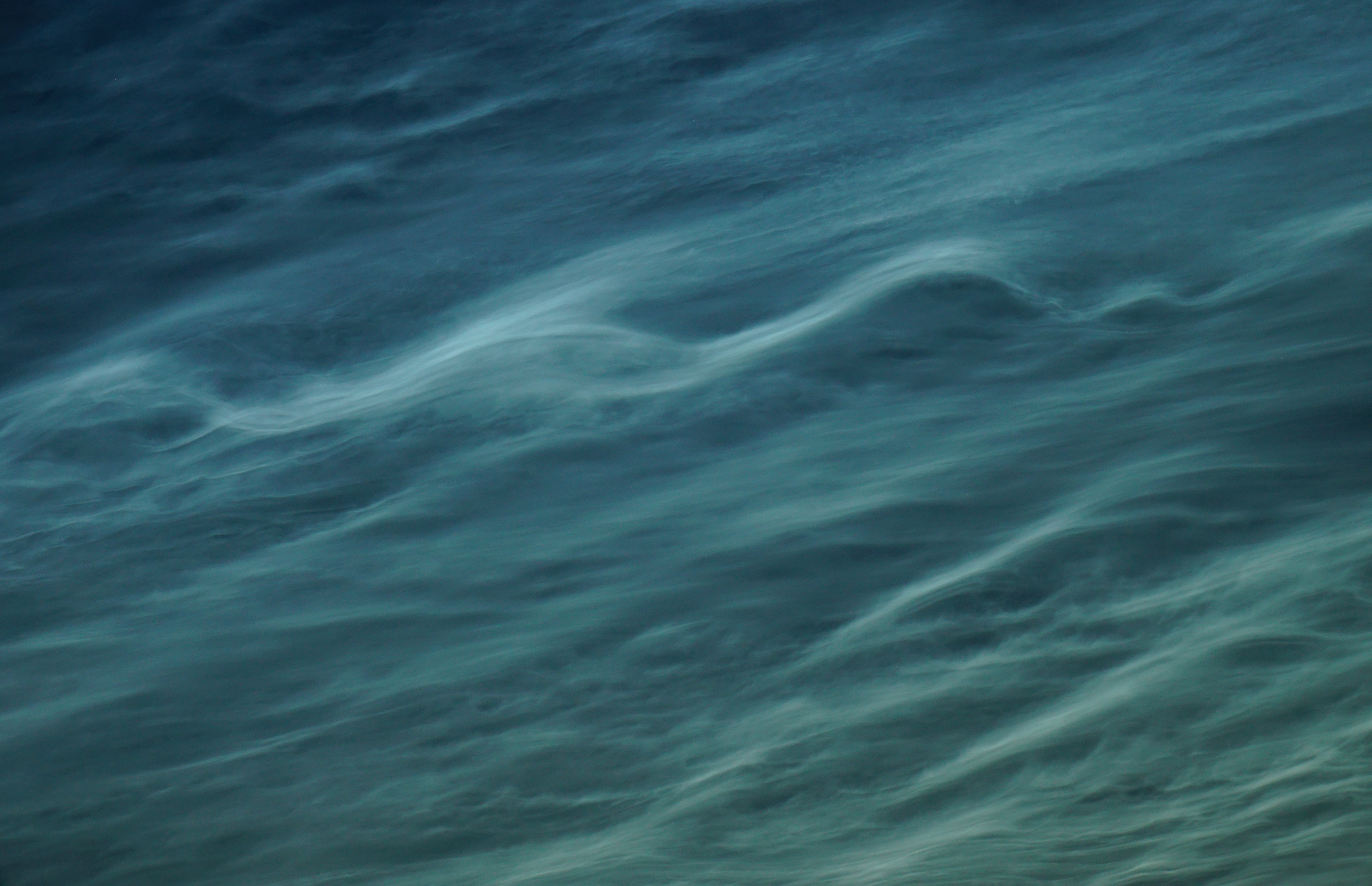 Ein spannender Abend begann mit 8/8 Bewölkung über Rostock und frühzeitigen Sichtungen von Alpen-Webcams. Völlig verblüfft klarte es rasch auf und der Blick ließ erstaunen: Bereits am noch hellen Dämmerungshimmel zeigten sich recht helle NLC, welche letztlich zügig die hellste Stufe (5) erreichten. Hier nun eine von drei Detailaufnahmen der spektakulärsten Phase vom Abendhimmel mit kleinem Fernrohr und f = 500 mm. Es wurde auch ein Zeitraffer erstellt, welcher sehr eindrücklich die sehr raschen Änderungen in der Mesosphäre darstellt. ( https://www.youtube.com/watch?v=p50MtBzzUL8 )