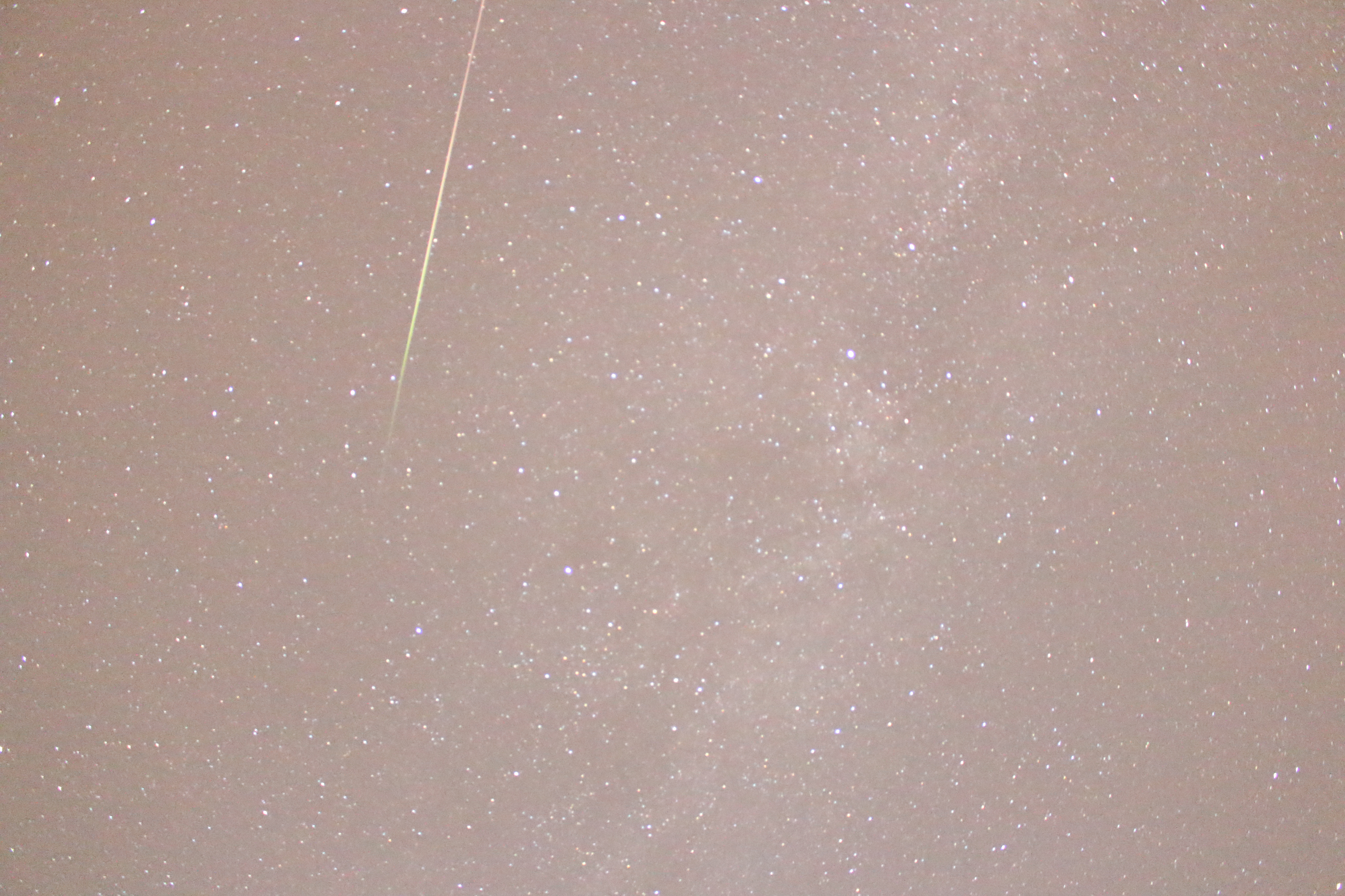 Etwa drei Sekunden nach dem Auslösen sah ich für eine Sekunde eine sehr helle Sternschnuppe, die auf dieser Aufnahme sehr gut zu sehen ist. Diese Sternschnuppe war selbst mit bloßem Auge sehr gut zu beobachten.