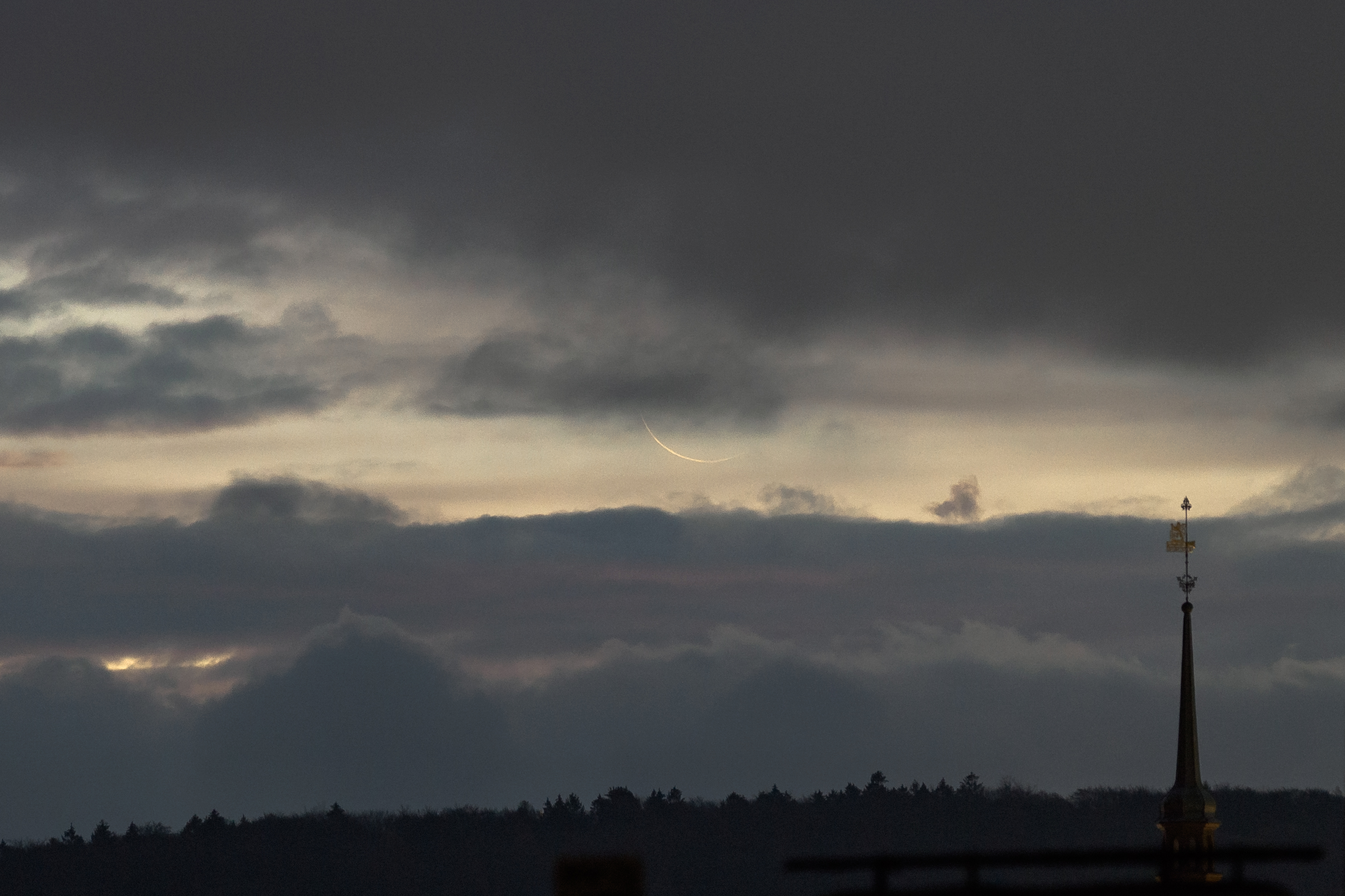 Nur für einen einzigen kurzen Moment war sie zu sehen, die sehr schmale Mondsichel am Morgen des 14. November 2020, 23 Stunden vor Neumond.
