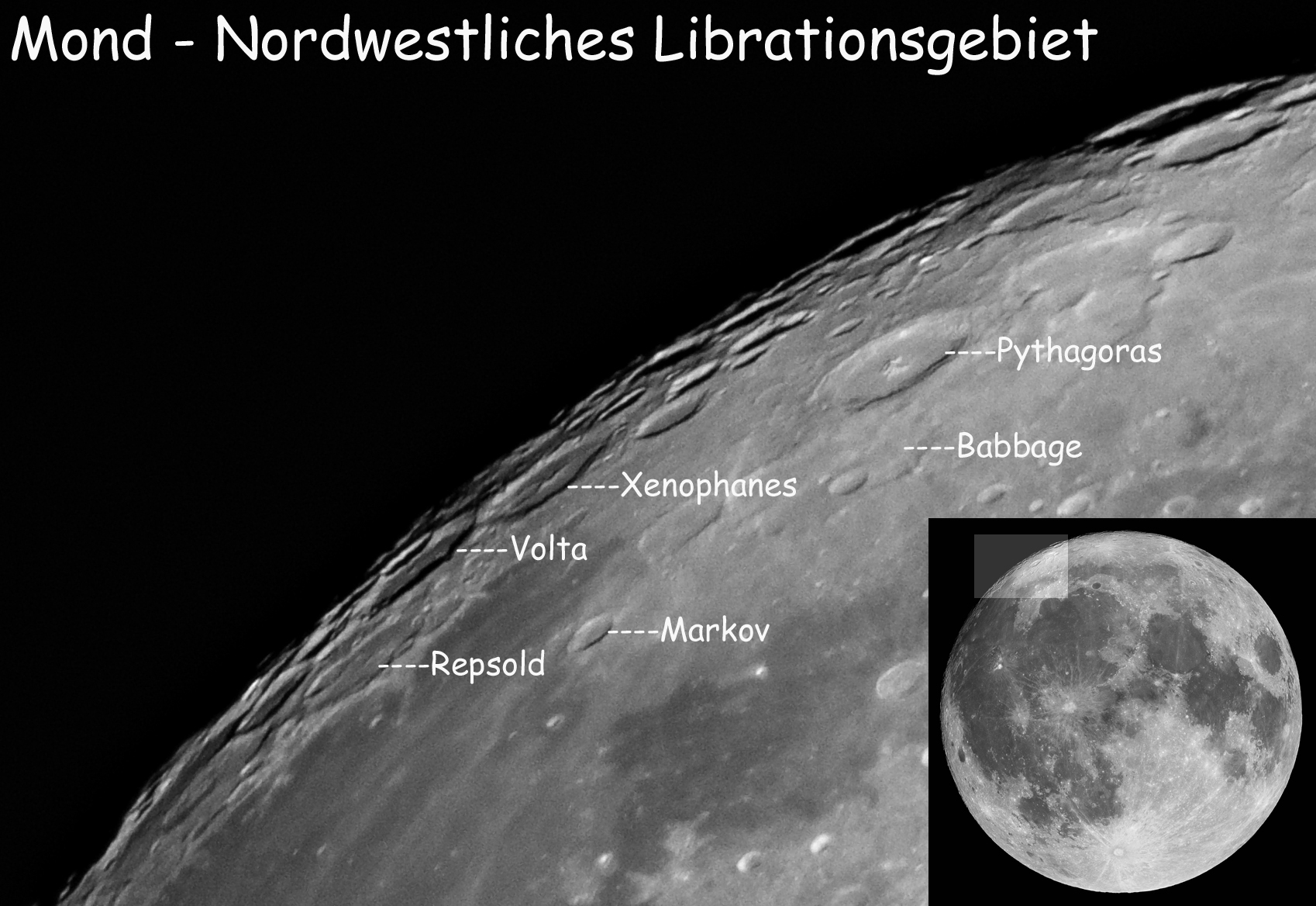 ... unter diesem Titel wurden in den siebziger Jahren des vorigen Jahrhunderts in der Zeitschrift Sterne und Weltraum die Librationsgebiete des Mondes vorgestellt. Vielleicht kann ja diese interessante Rubrik ein oder zwei mal im Jahr wieder Einzug in die Zeitschrift halten. Hier ist jedenfalls mein Beitrag dazu, gerade die drei Krater Repsold, Volta und Xenophanes sind wohl bisher noch nicht oft fotografiert worden. (Ach ja, falls mich die Redaktion wegen der Beschriftung, ich nehme ihnen ja die Arbeit weg, zum Mond schießen will, wie ein altes Sprichwort sagt, gerne.)