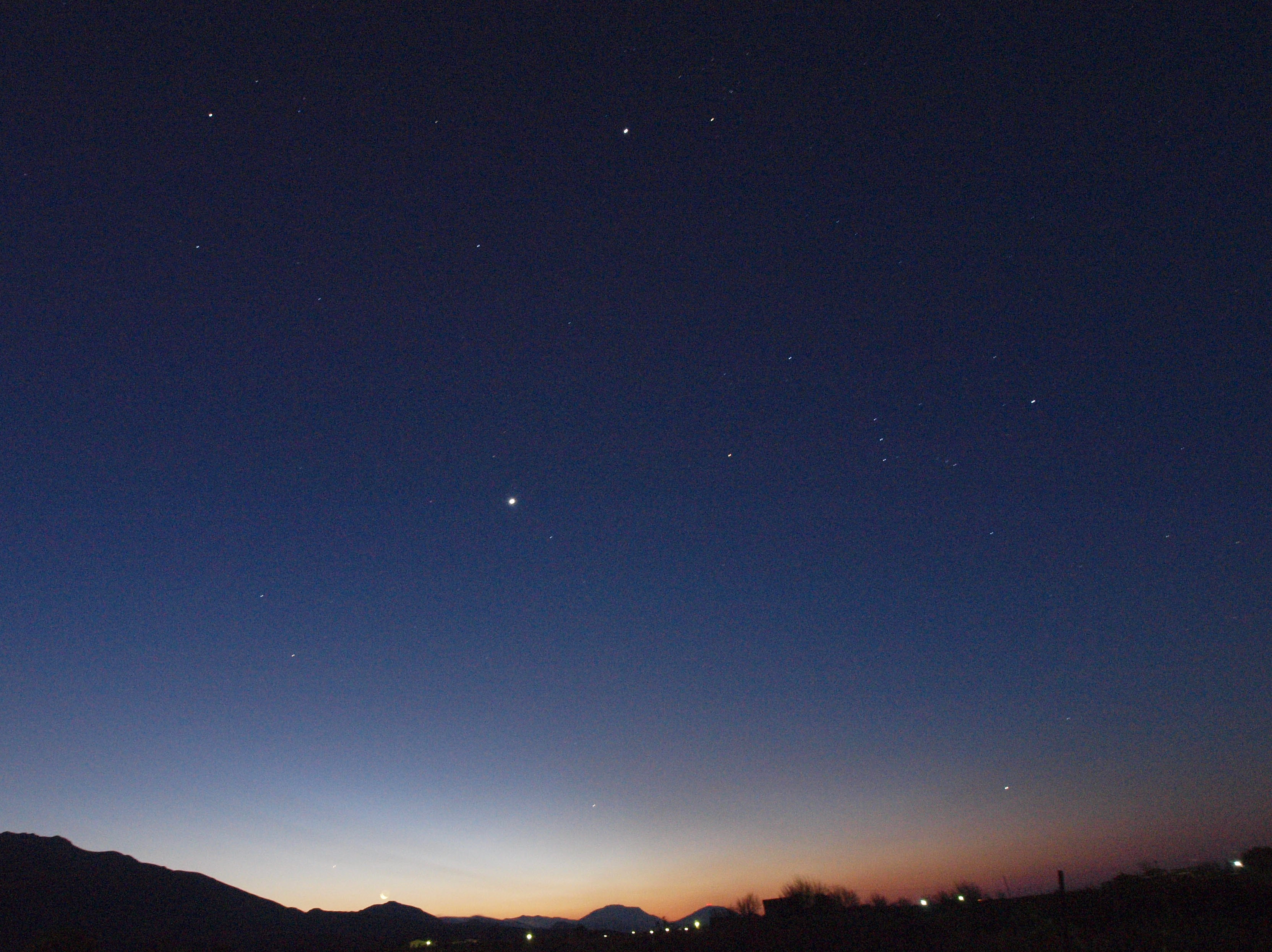 Während unseres Familienurlaubs an der Südküste Kretas ergab sich die seltene Möglichkeit zur Beobachtung des in unseren Breiten nur schwer zu sichtenden Planten Merkur (16. August größte westliche Elongation) in einer ungewöhnlichen Konstellation mit dem Mond im Sternbild Krebs (abnehmende Sichel letzmals in der Morgendämmerung sichtbar), der Venus (größte westliche Elongation am Vortag) in den Zwillingen und dem Jupiter im Stier. Bei sehr günstigen Bedingungen und praktisch freiem Horizont (Ausläufer der Lefka Ori - "Weiße Berge" und wenige bäuerliche Anwesen) war Merkur etwa 20 Minuten nach Aufgang gut in dieser Konstellation zu beobachten.
