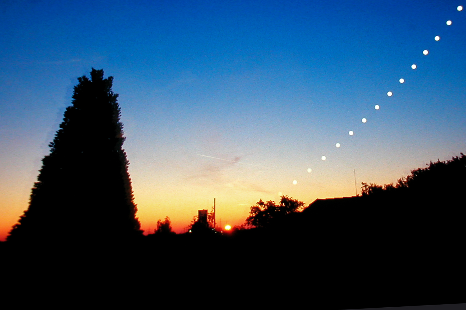 Die Aufnahme diente zur Vorbereitung der Sonnenfinsternis 2009 in China. Witterungsbedingt war dort die Durchführung einer Serienaufnahme nicht möglich. Ich habe insgesamt 26 Belichtungen auf einem Filmfeld gemacht. Hier gezeigt wird ein Ausschnitt.