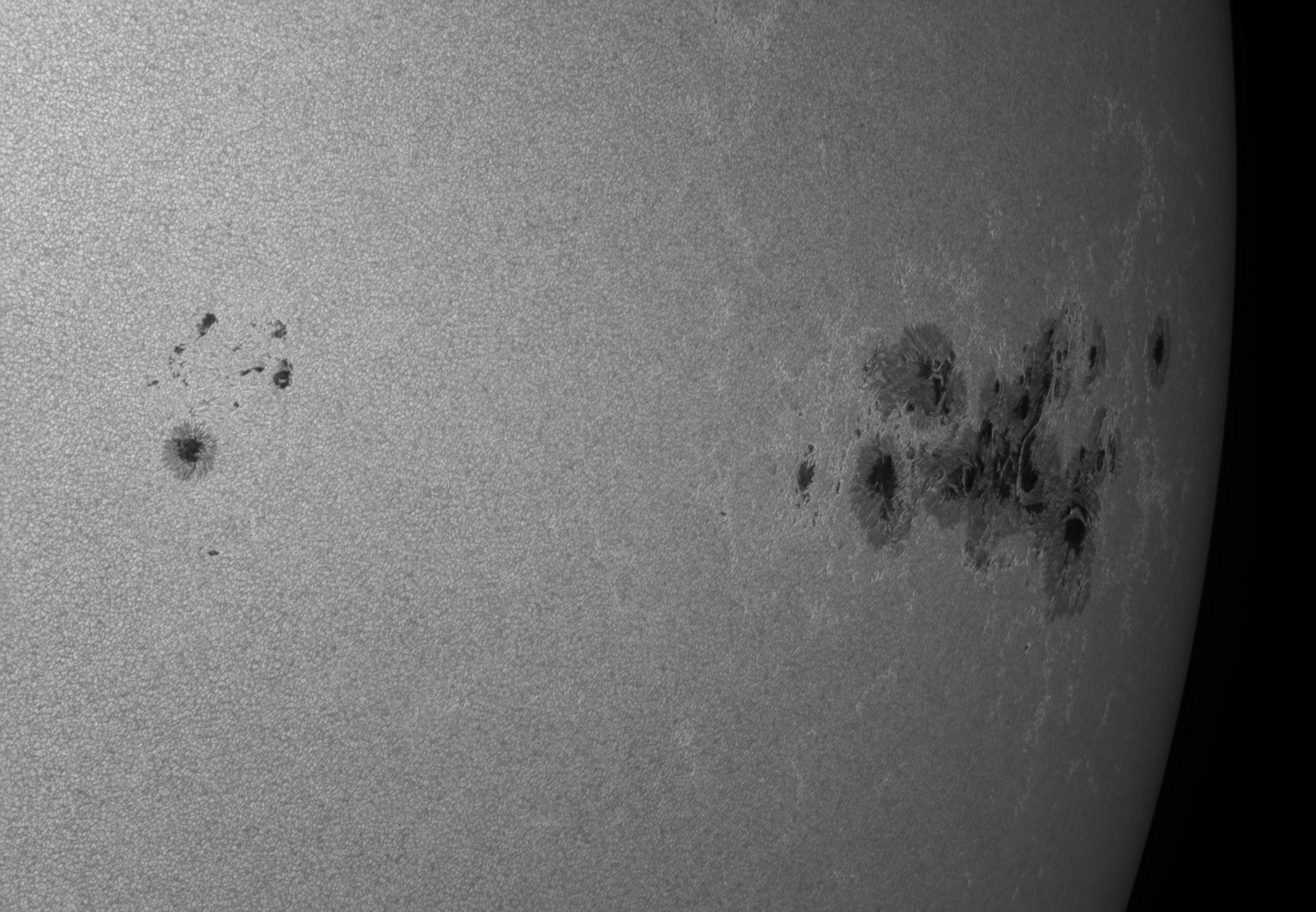 | Teleskop/Objektiv | 8" Newton mit 2,7 APM Barlow, Baader Solar Kontinuum Filter |