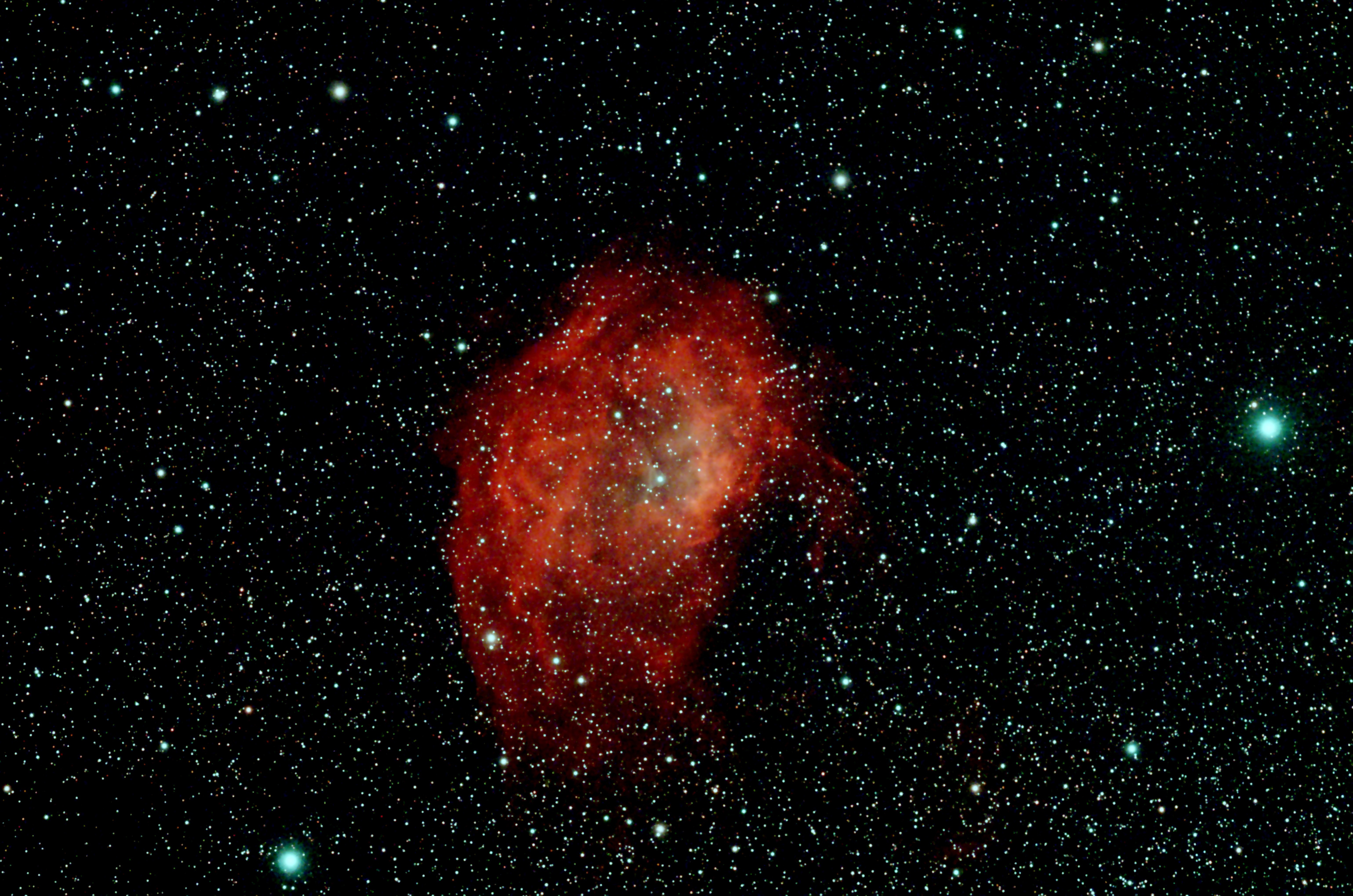 Eine sehr klare Nacht mit allerdings mäßigem Seeing hat dazu eingeladen, mit kleinerem Gerät einen sehr schönen, aber doch selten abgelichteten Emissionsnebel im Orion festzuhalten.