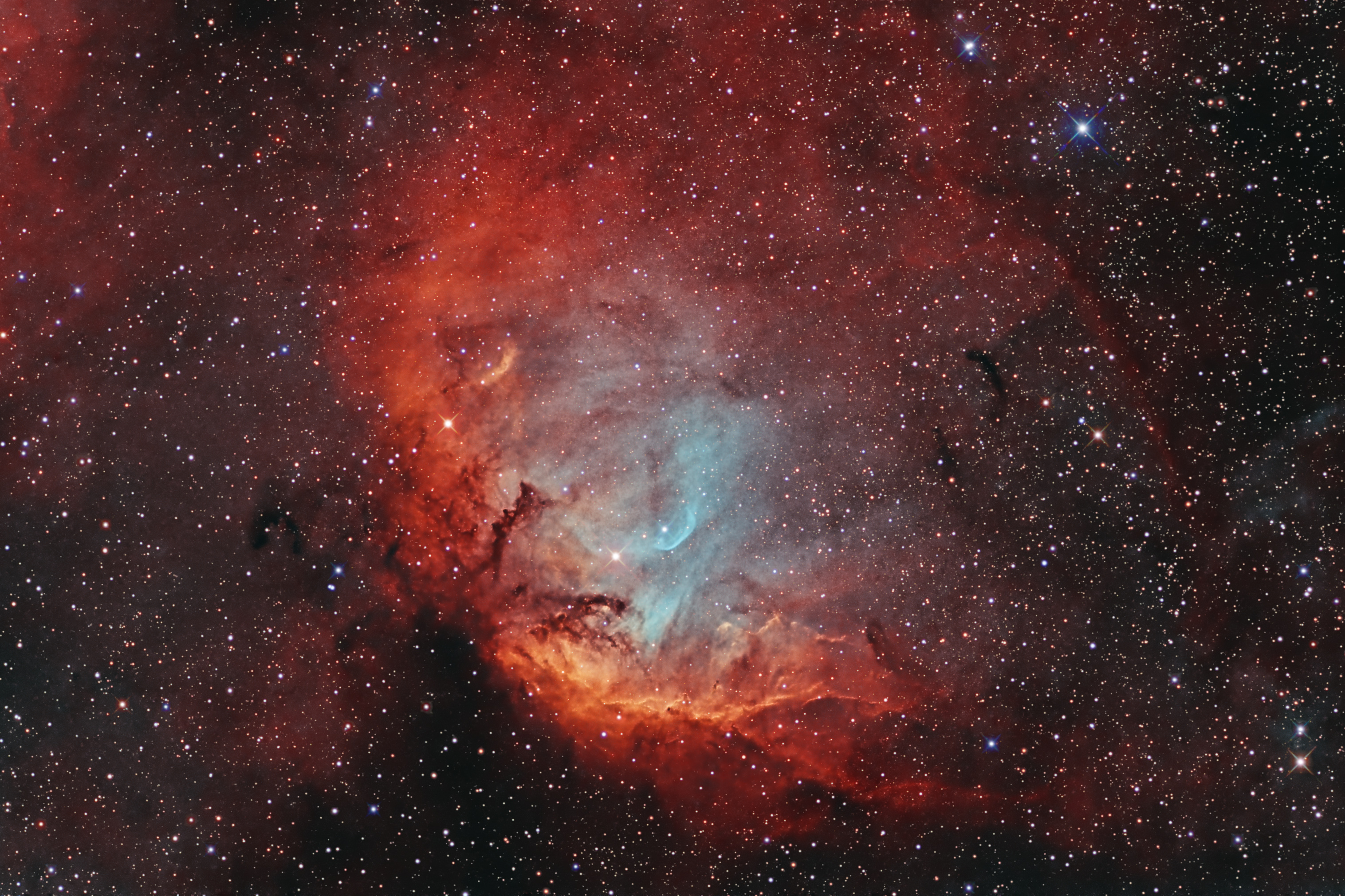 | Belichtungszeit | H-alpha, SII, OIII: jeweils 9 x 900s; R,G,B: jeweils 10 x 180s |
