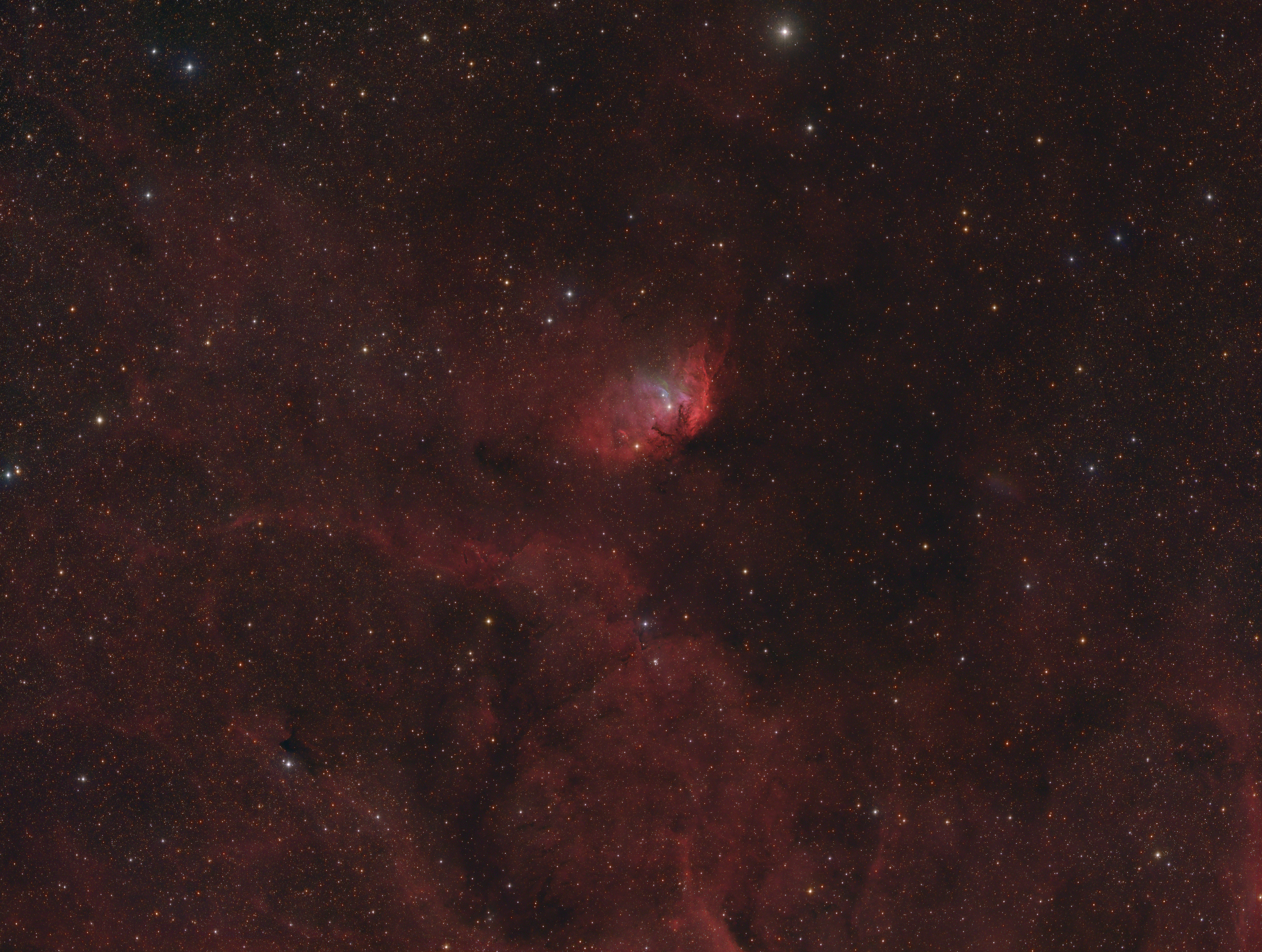 Dieser tulpenartige Nebel mit seinen Strukturen kommt am besten in Kombination mit H-Alpha- und OIII-Filtern zur Geltung.