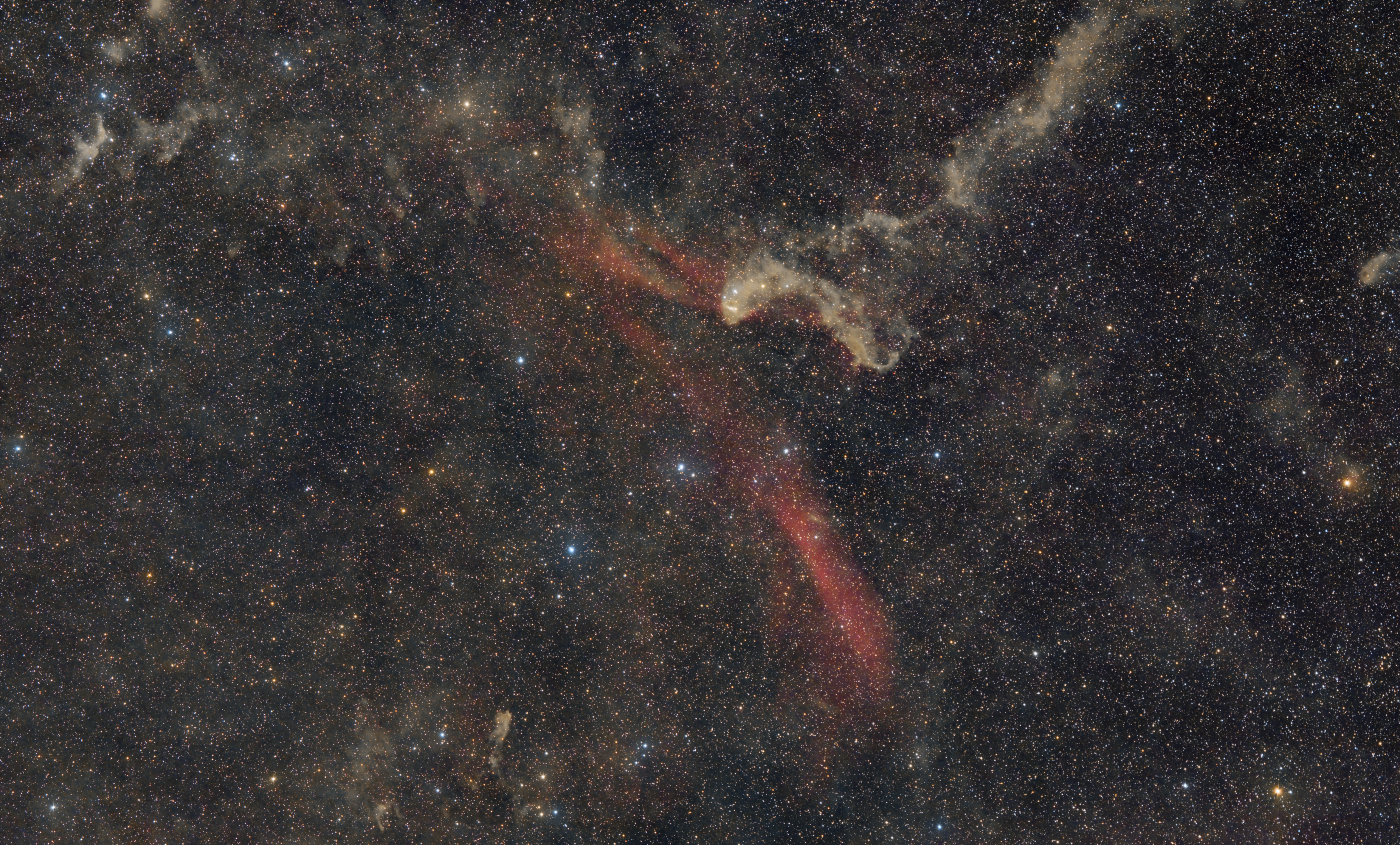 Hier das Ergebnis einer deutsch-österreichischen Kooperation zwischen Manfred Schreiber und mir (Dennis Marso). Es handelt sich um eine Weitfeldaufnahme des Emissionsnebels Sh2-126, der mitunter auch als »Great Lacerta Nebula« im Internet zu finden ist. Leicht oberhalb der Bildmitte erkennen wir deutlich den Gecko-Nebel, dessen offizielle Bezeichnung LBN 437 lautet. In diesem Bereich des Himmels kann man sich wieder einmal mit allen möglichen Brennweiten nach Herzenslust austoben. Sieben Nächte zwischen Juli und August 2024 haben wir beide in dieses Bild investiert.