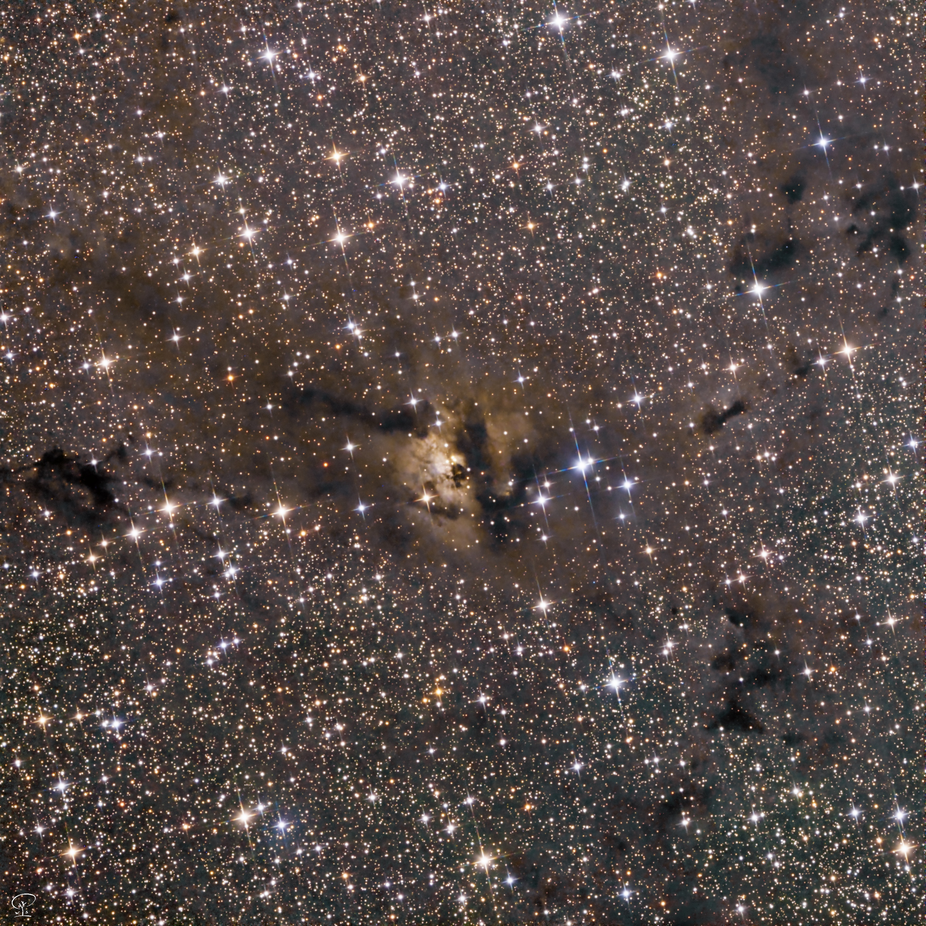 SH2-187 ist eine hübsche Ansammlung von Emissions-, Reflexions- und Dunkelnebel im Sternbild Kassiopeia, umgeben von großen Staubwolken und einem dichten Sternenfeld.
