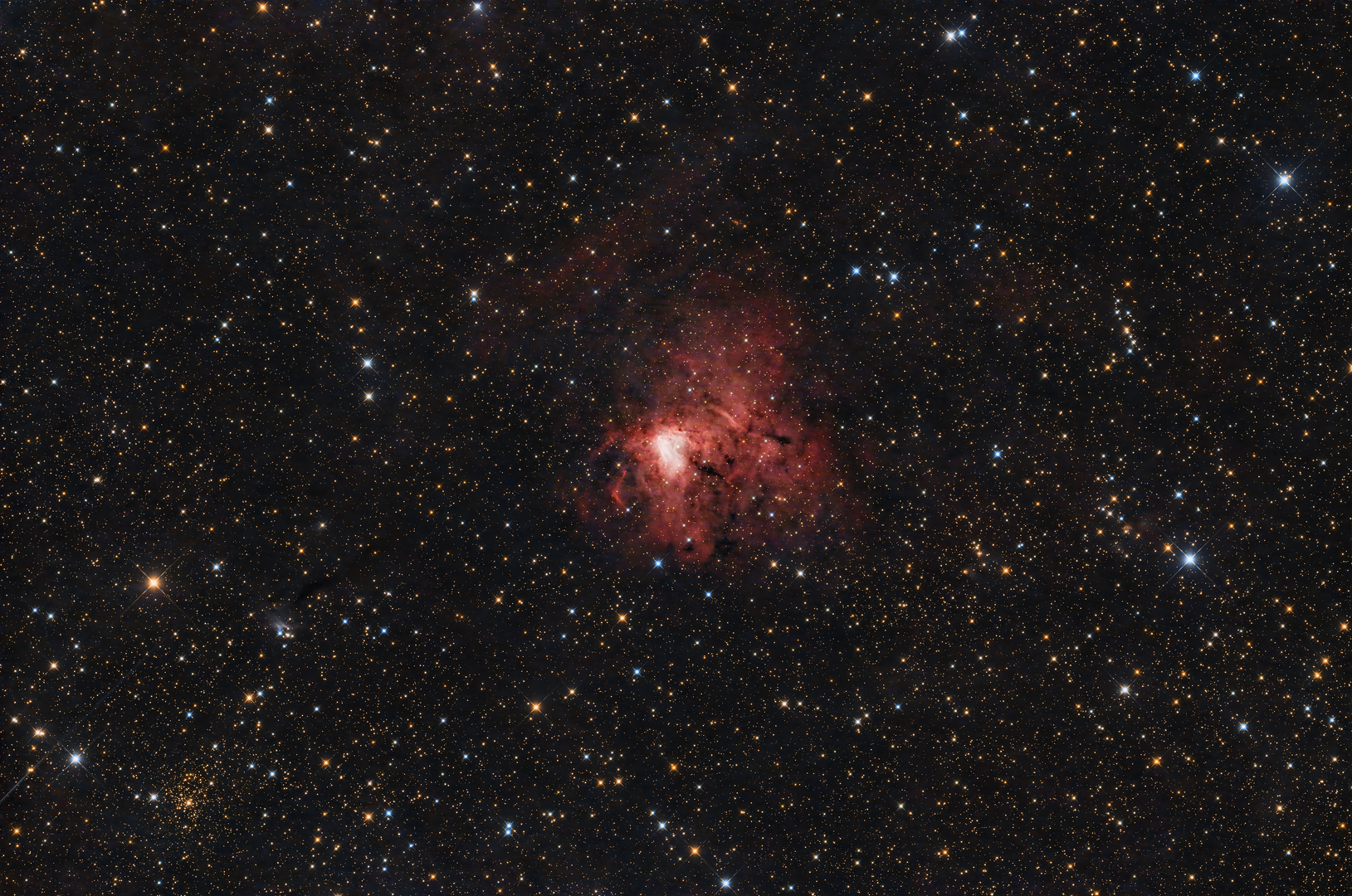 Der Emissionsnebel Sh2-206, auch als NGC 1491 bekannt, liegt im Sternbild Perseus nahe der galaktischen Ebene der Milchstraße. Er befindet sich in einer Entfernung von etwa 9000 Lichtjahren und ist Teil eines aktiven Sternentstehungsgebiets. Das Nebelgas wird hauptsächlich durch einen jungen, heißen O-Stern ionisiert, dessen intensive UV-Strahlung den Wasserstoff zum Leuchten anregt. Sh2-206 gehört zur Sharpless-Katalogklasse der H-II-Regionen, also ausgedehnten Wolken aus ionisiertem Wasserstoff. Astrophysikalisch interessant ist die Wechselwirkung zwischen Sternwind und interstellarem Medium, die komplexe Gasstrukturen erzeugt. Fotografisch zeigt der Nebel starke H-alpha-Emissionen, mit Schmalband würden auch noch vermehrt OIII- und SII-Anteile rauszuholen sein.