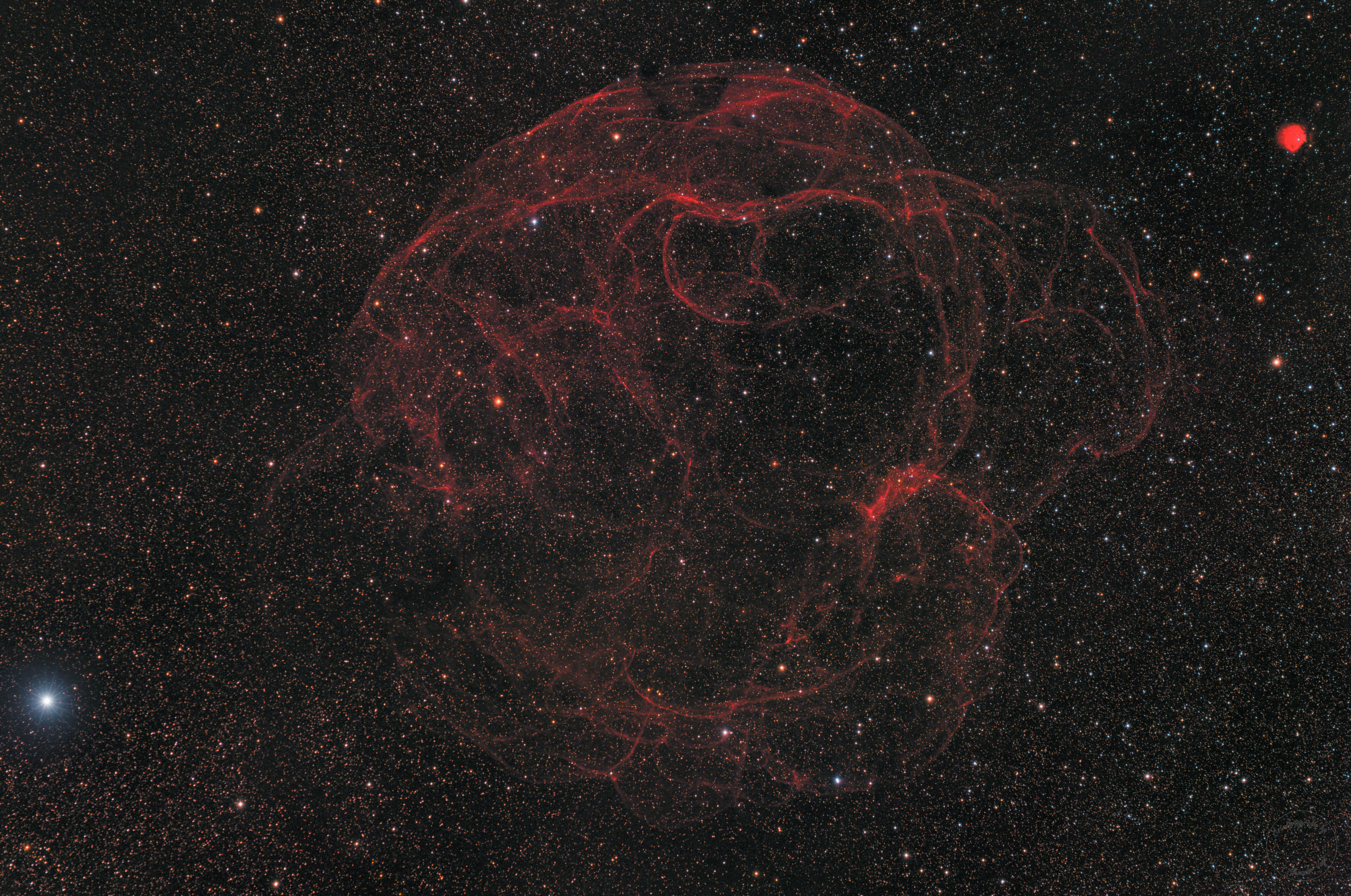 SH2-240, der Spaghettinebel. 12,3h H-Alpha-RGB