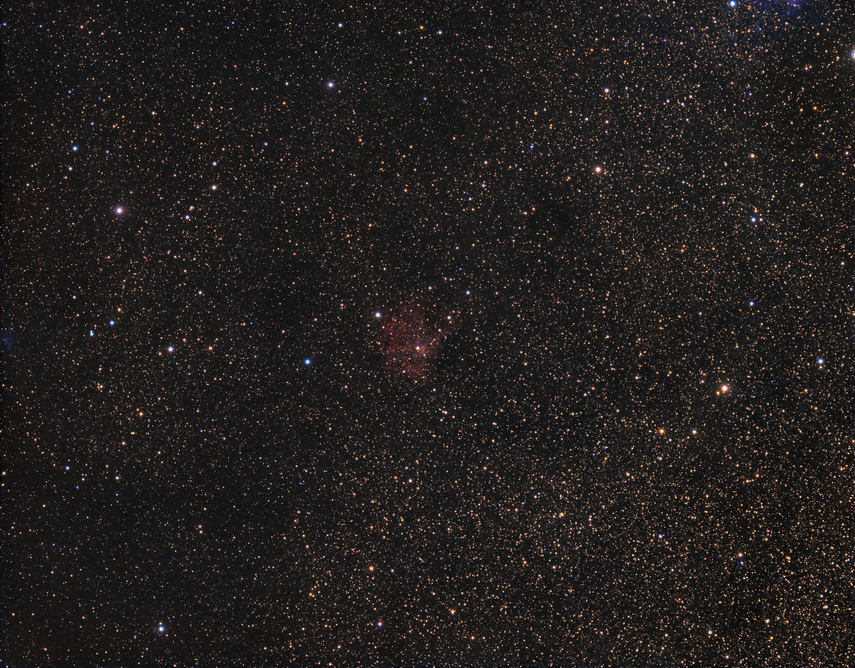 Sh2-66 ist ein Emissionsnebel, der im Sternbild Adler (Aquila) liegt. Die genaue Entfernung von Sh2-66 variiert je nach Quelle, aber sie wird auf etwa 3200 Lichtjahre geschätzt. Die Region wird von jungen, massereichen Sternen beleuchtet, die ultraviolette Strahlung abgeben und den Wasserstoff ionisieren, was das charakteristische Leuchten erzeugt. UV-Strahlung von massereichen Sternen führt zur Ionisierung von Wasserstoffgas, was die charakteristische Hα-Emission (bei 656,3 nm) verursacht. Sh2-66 befindet sich in einer reichhaltigen Sternentstehungsregion und ist von anderen Nebeln und Sternhaufen umgeben. Wie bei vielen Objekten im Sharpless-Katalog sind detaillierte Informationen zu Sh2-66 schwerer zugänglich, da die Region im Vergleich zu prominenteren Nebeln relativ wenig untersucht ist.
