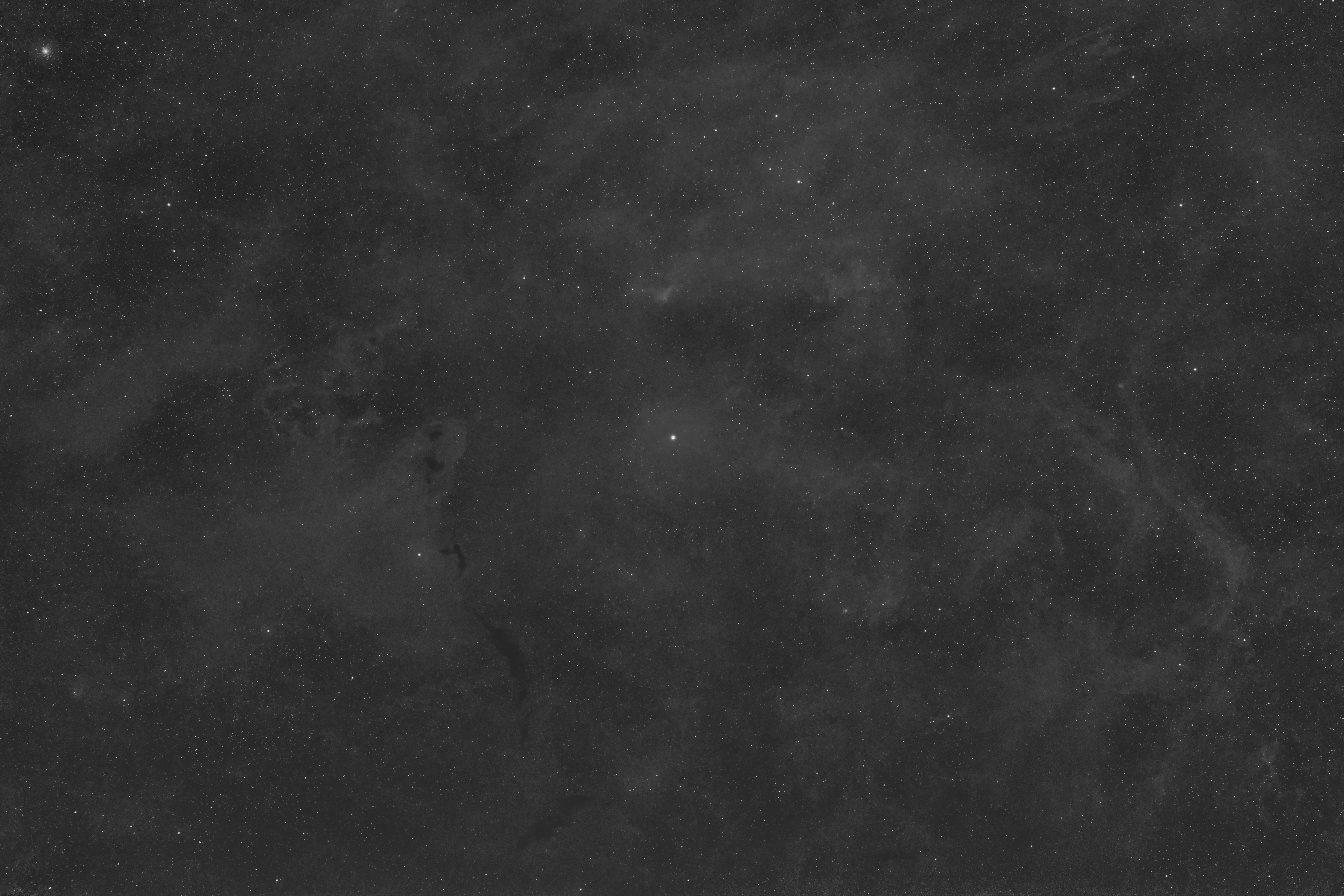 Nördlich des Sternbilds Skorpion befindet sich der riesige, jedoch sehr lichtschwache Emissionsnebel Sharpless 2-27. Diese Aufnahme zeigt die weitreichenden Staubstrukturen in einer reinen RGB-Aufnahme.
