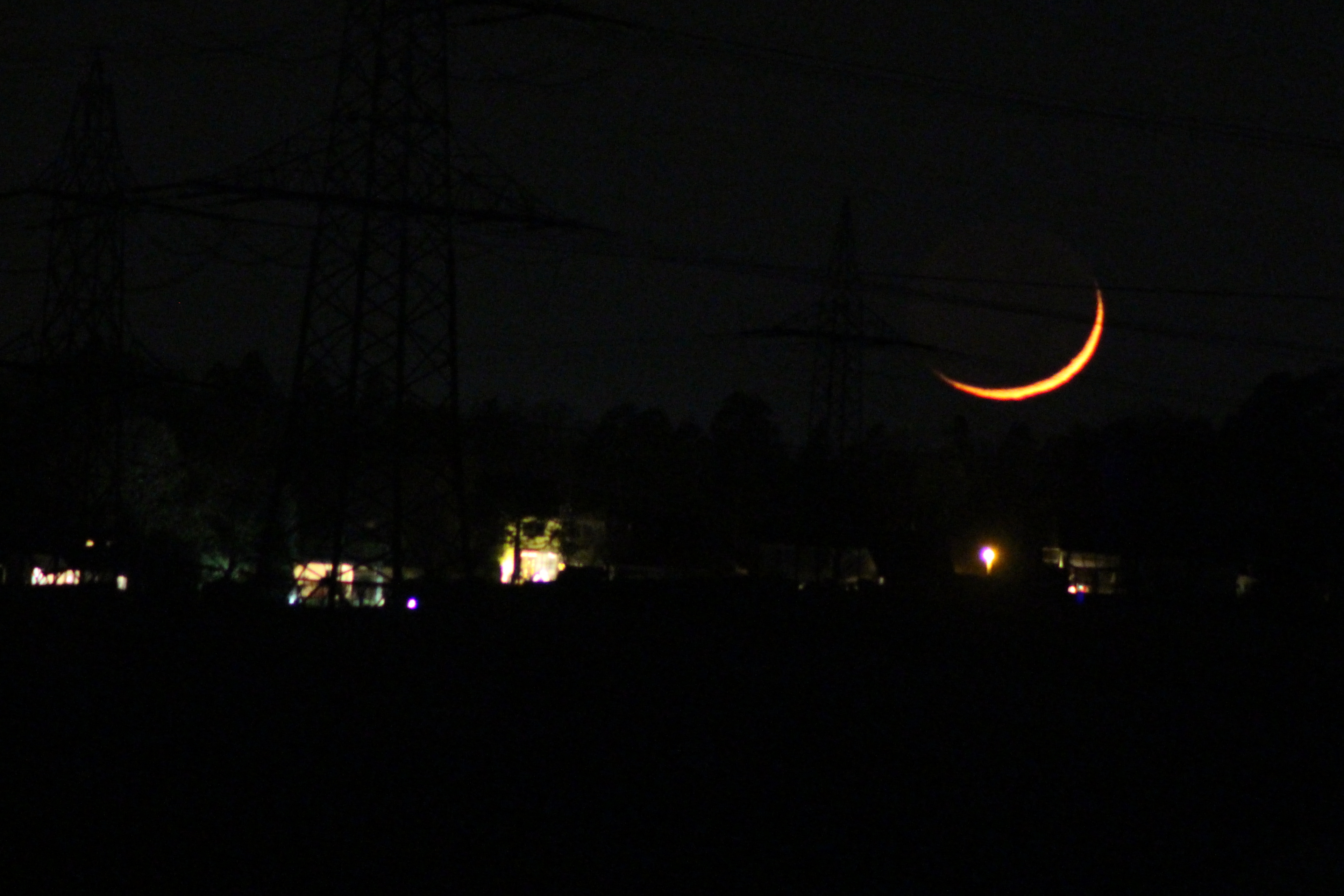 Sichelmond kurz vor dem Untergang, aufgenommen nördlich des Sindelfinger Ortsteils Darmsheim.
