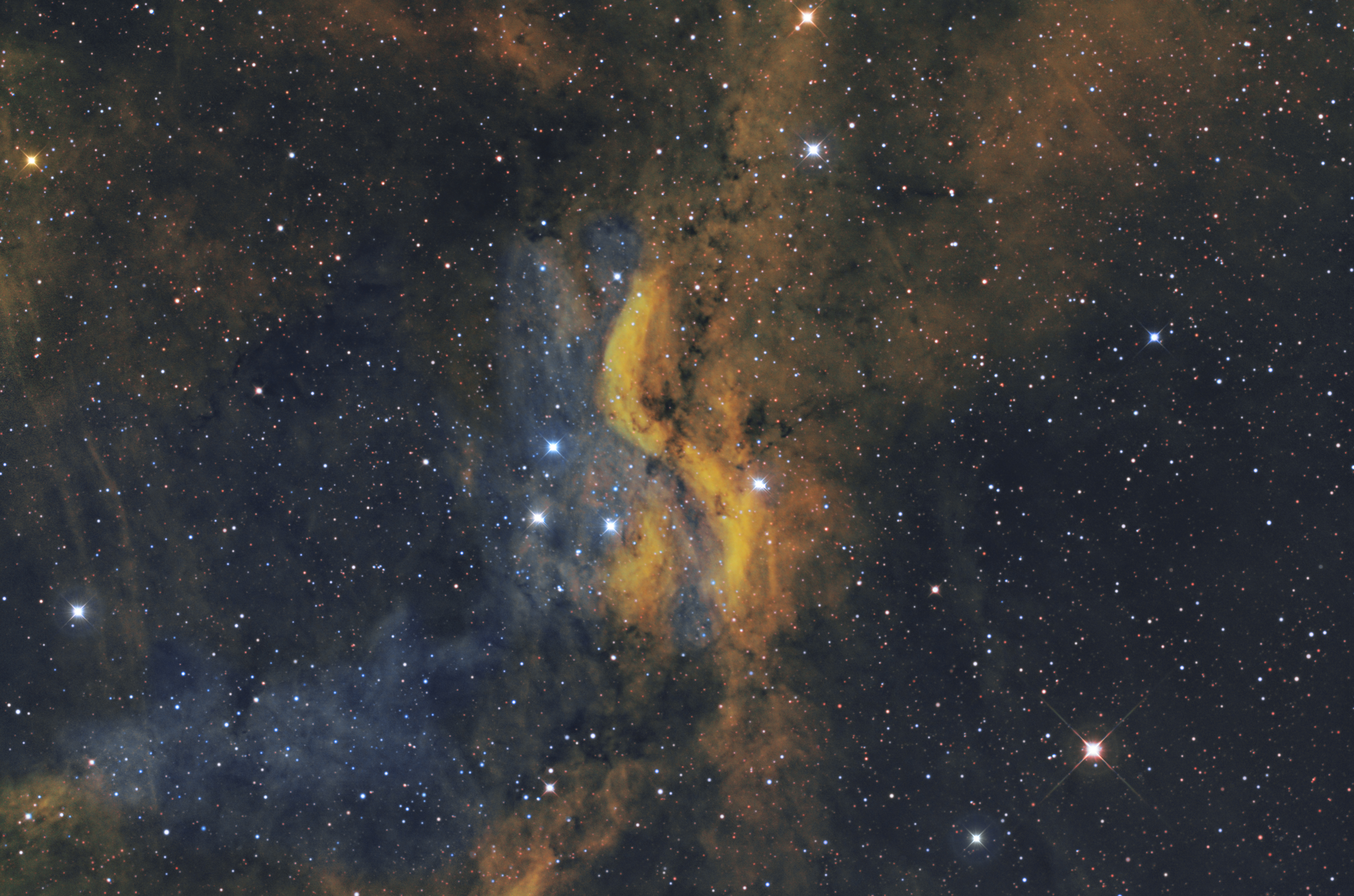 | Belichtungszeit | 32 x 600 s H-Alpha 3nm, 8 x 1200 s [SII] + [OIII] |