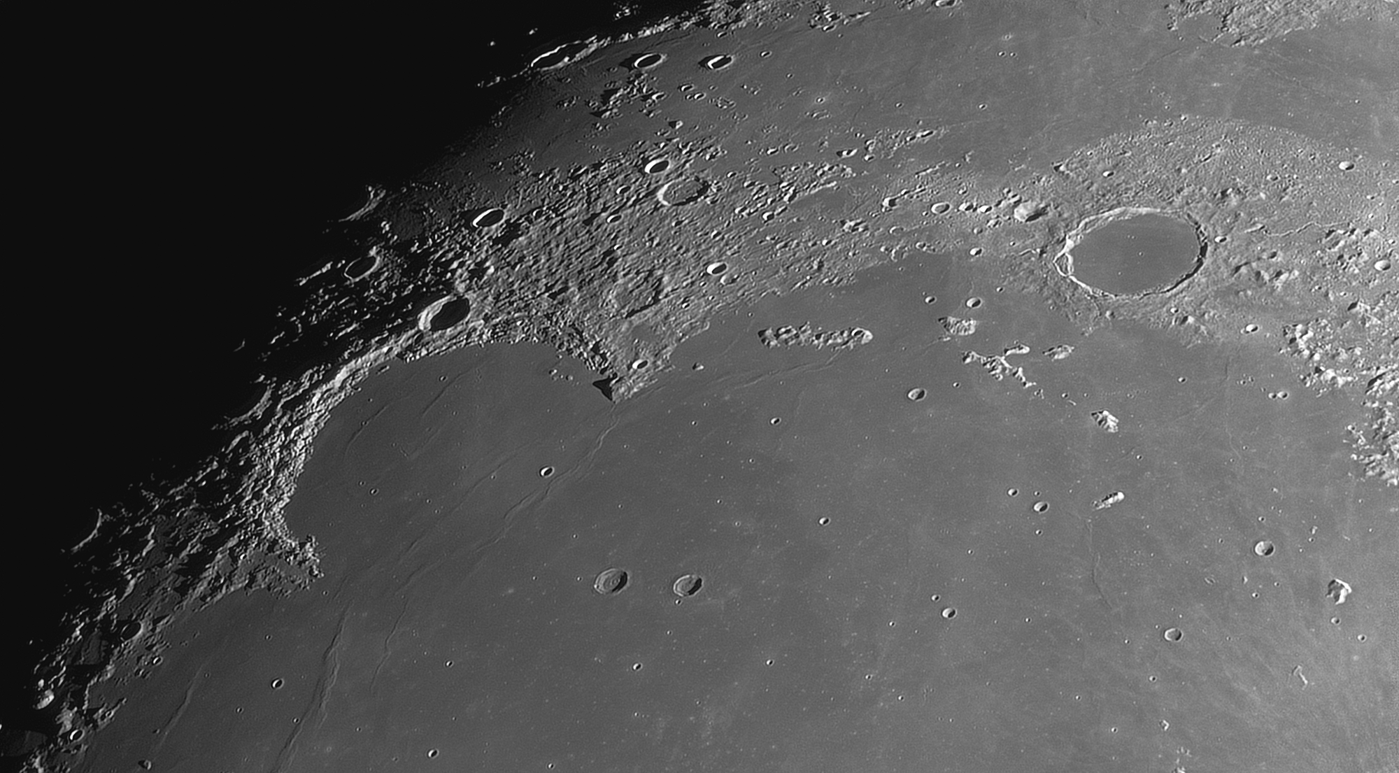 In kurzen Momenten mit besserer Luftruhe und bei etwas Hochnebel, war es möglich mit dem 7-Zöller viele Details abzubilden. Auch in Plato sieht man einige der kleinen Krater. Das Warten auf den richtigen Moment hat sich gelohnt.