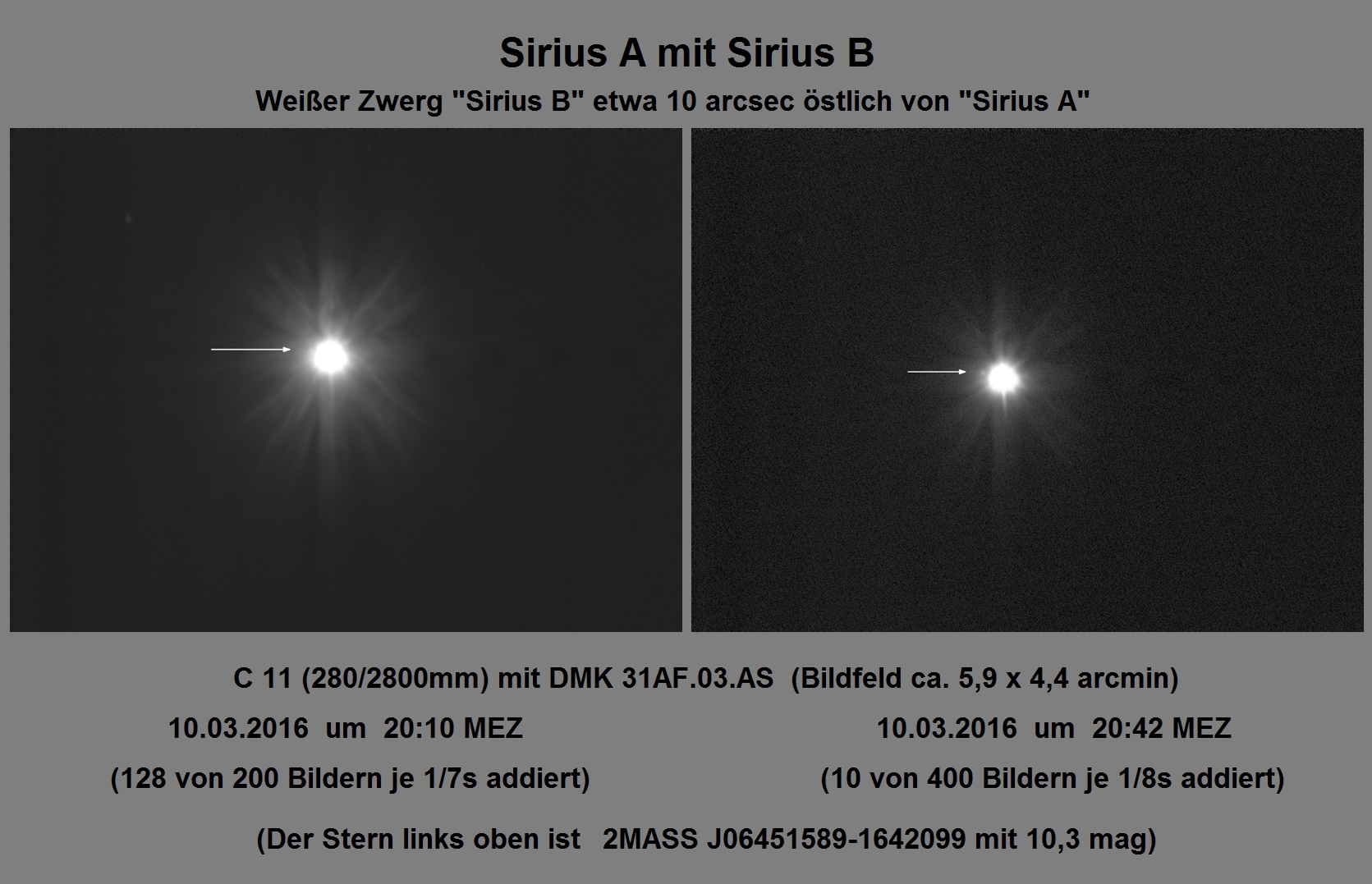 Am 10.03.2016 ist es mir endlich gelungen, Sirius B fotografisch nachzuweisen (siehe Beschreibung auf dem Bild).