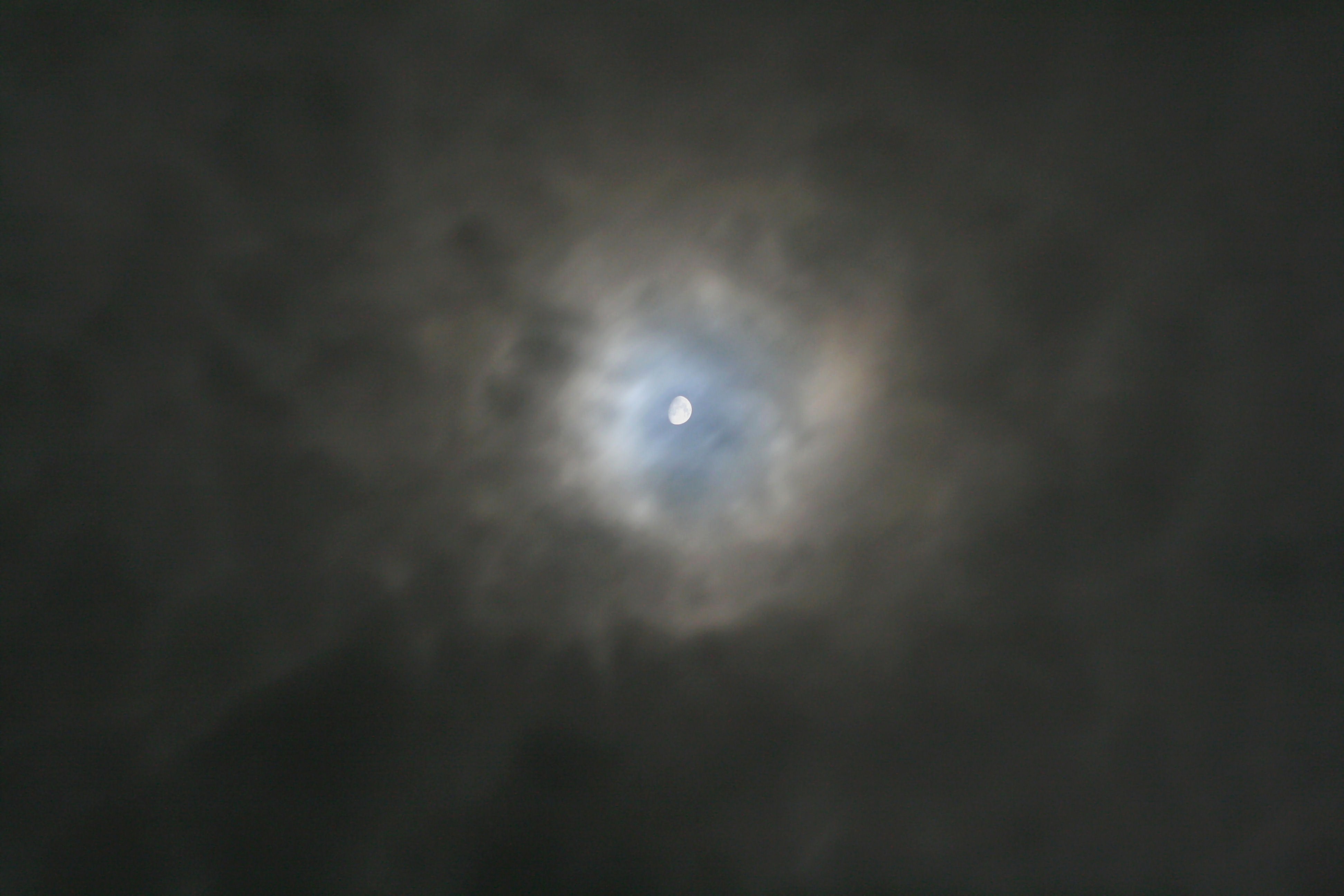 Nur 1,3 Sekunden benötigte das Mondlicht nach seiner 1,3 Sekunden dauernden Reise zu uns, um dieses stimmungsvolle Bild einer bewölkten Mondnacht auf den Kamerachip zu malen.