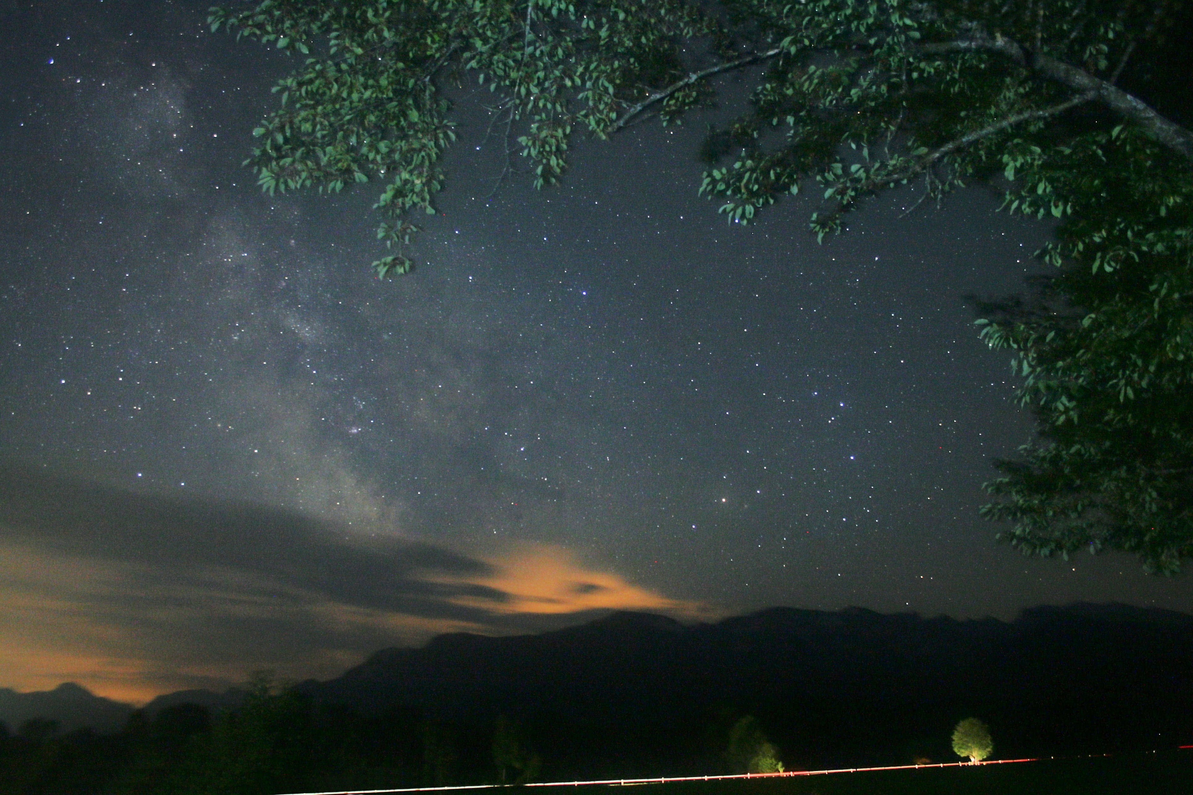 Eine herrliche Sommernacht- die Milchstraße am Himmel, angenehme Temperatur, üppige Vegetation, Wetterleuchten am