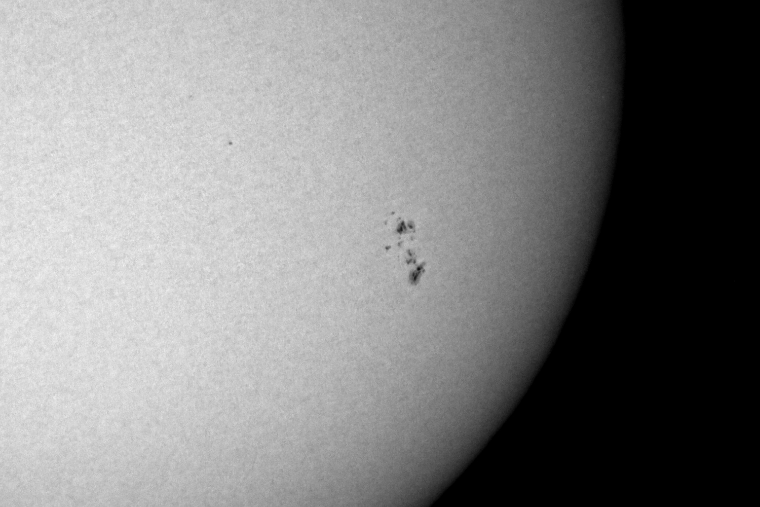 In den letzten Tagen entwickelten sich auf der Sonne zwei Fleckengruppen: AR 2735 (Einzelfleck, links) und die kompakte Gruppe AR 2736 (rechts). In Zeiten des Sonnenfleckenminimums, wie wir es derzeit erleben, eine durchaus beachtenswerte Entwicklung. Insbesondere noch dadurch, als die Gruppe AR 2736 am 20. März 2019 um 11:18 UT einen C4-Class-Flare produzierte, der fast erdgerichtet war. Ich nahm etwa 200 Einzelbilder auf und suchte das schärfste heraus.