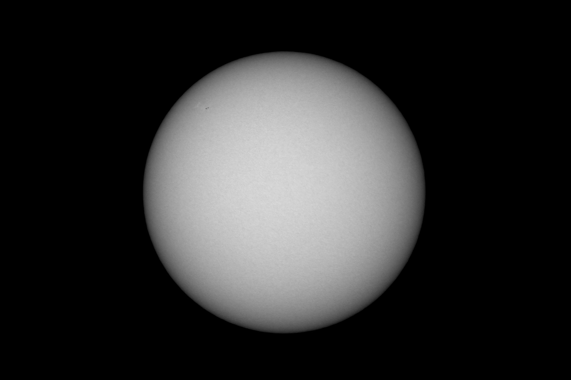 Die Sonne mit der kleinen Fleckengruppe AR 2759, welche zum neuen 25. Sonnenfleckenzyklus gehört. Links der Gruppe sind einige Sonnenfackeln zu sehen. Ganz langsam kommt der neue Zyklus in Gang.