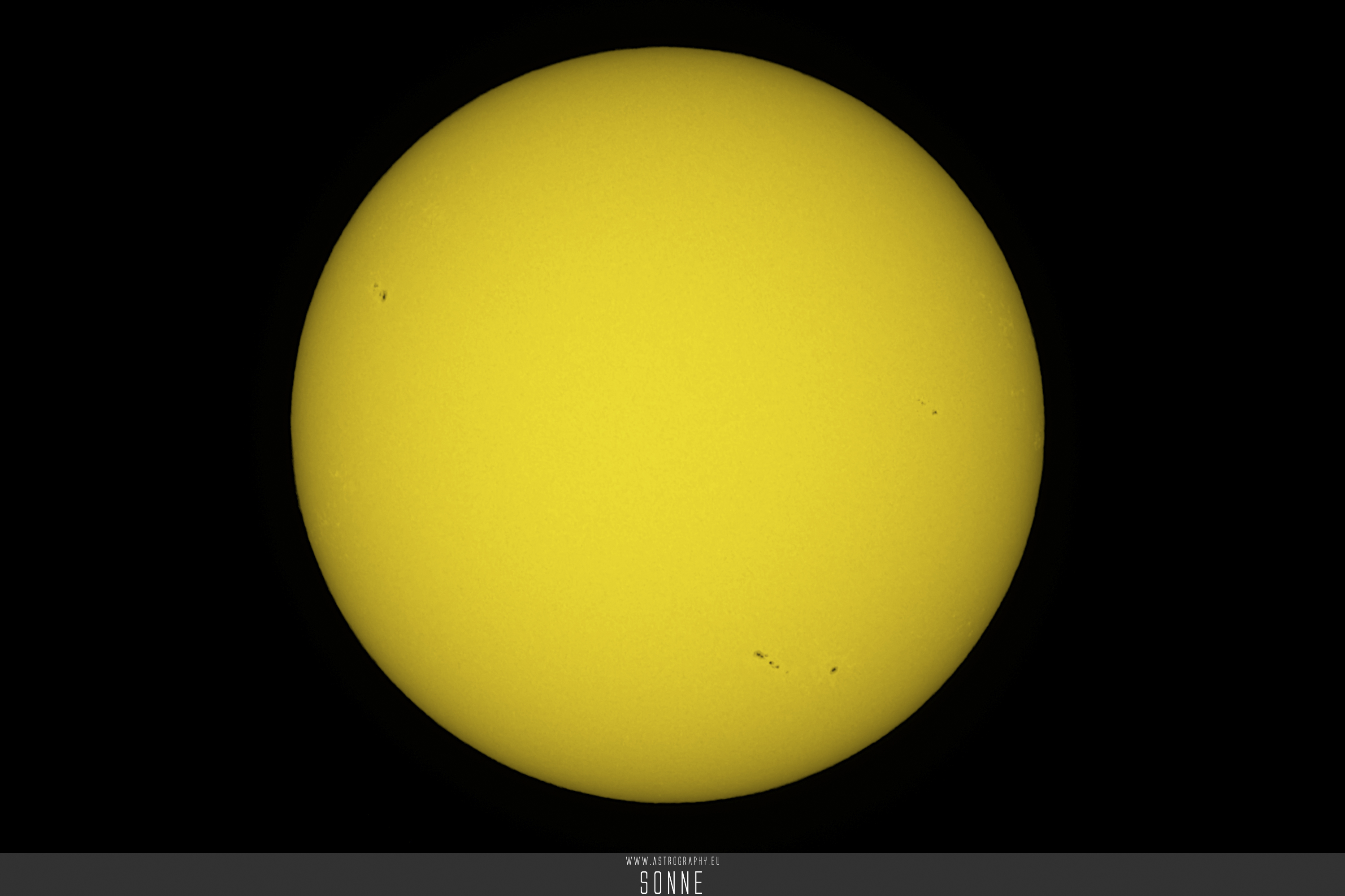 Sonne mit 540-nm-Solar Continuum Filter. Der späte Nachmittag hat ein paar kurze Blicke auf die Sonne zugelassen. Making of: https://www.astrography.eu/sonne-mit-herschelkeil-v1/