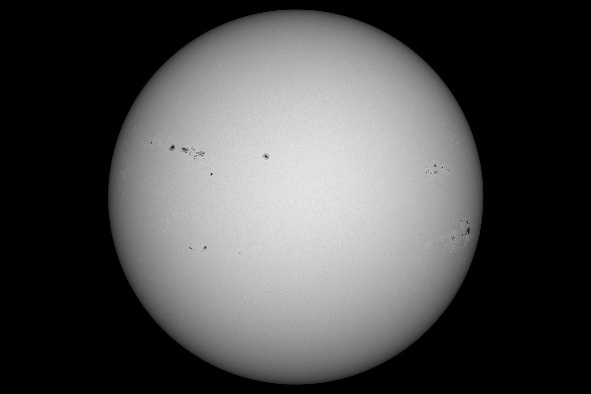 Gegenüber dem 12. Juni hat sich die Fleckenaktivität besonders in den Gruppen links oben auf der Nordhalbkugel deutlich verstärkt. Daher hab ich gestern noch mal auf die Sonne gehalten, um einen Vergleich zu machen.