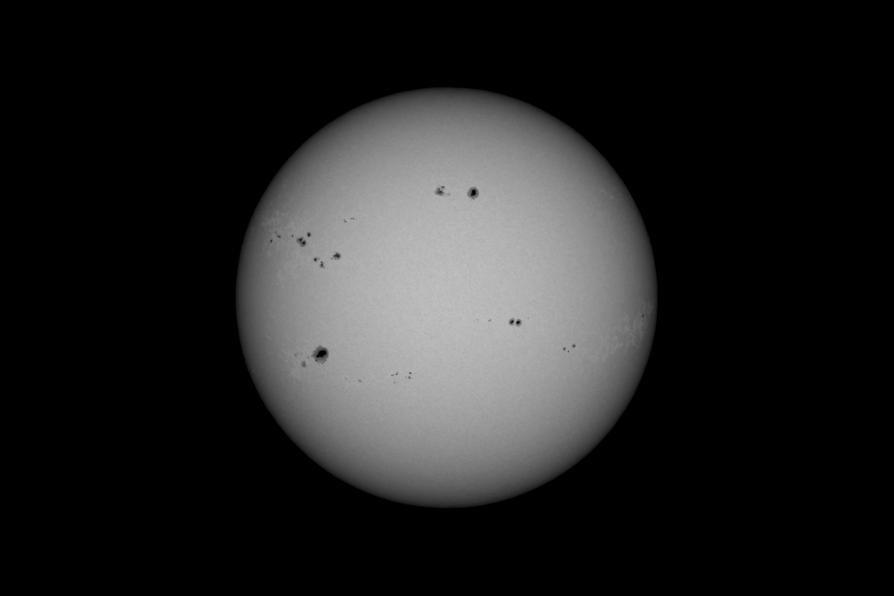| Teleskop/Objektiv | Refraktor 130/1200 + Baader Solarfolie + Baader Solar Continuum Filter 7 nm/540 nm (1,25") |