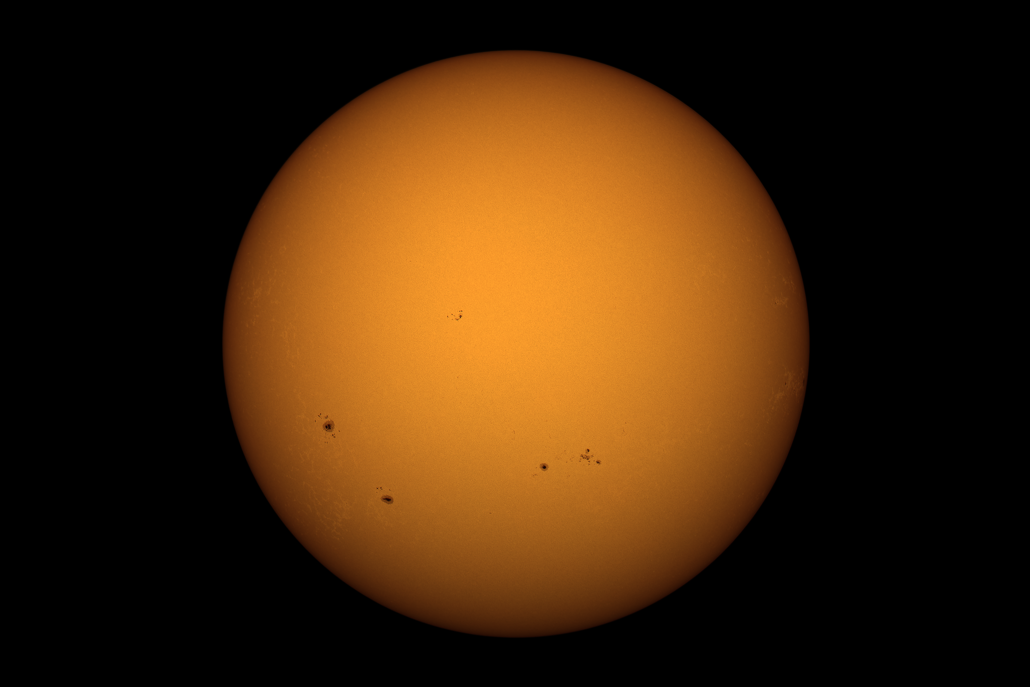 Weiterhin dominiert die Südhalbkugel der Sonne das aktuelle Fleckengeschehen im Weißlicht… Transparenz und Seeing leicht unterdurchschnittlich, böiger Südostwind…