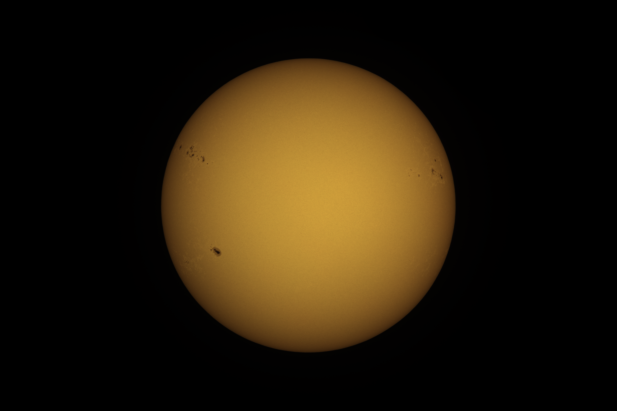 | Teleskop/Objektiv | Intes 150/900 MN + Baader VIP Barlow 2x (1800 mm) + TS Neutralfilter ND 0.9 (13% Transmission, 1.25") + Baader Solarfolie OD 3.8 |