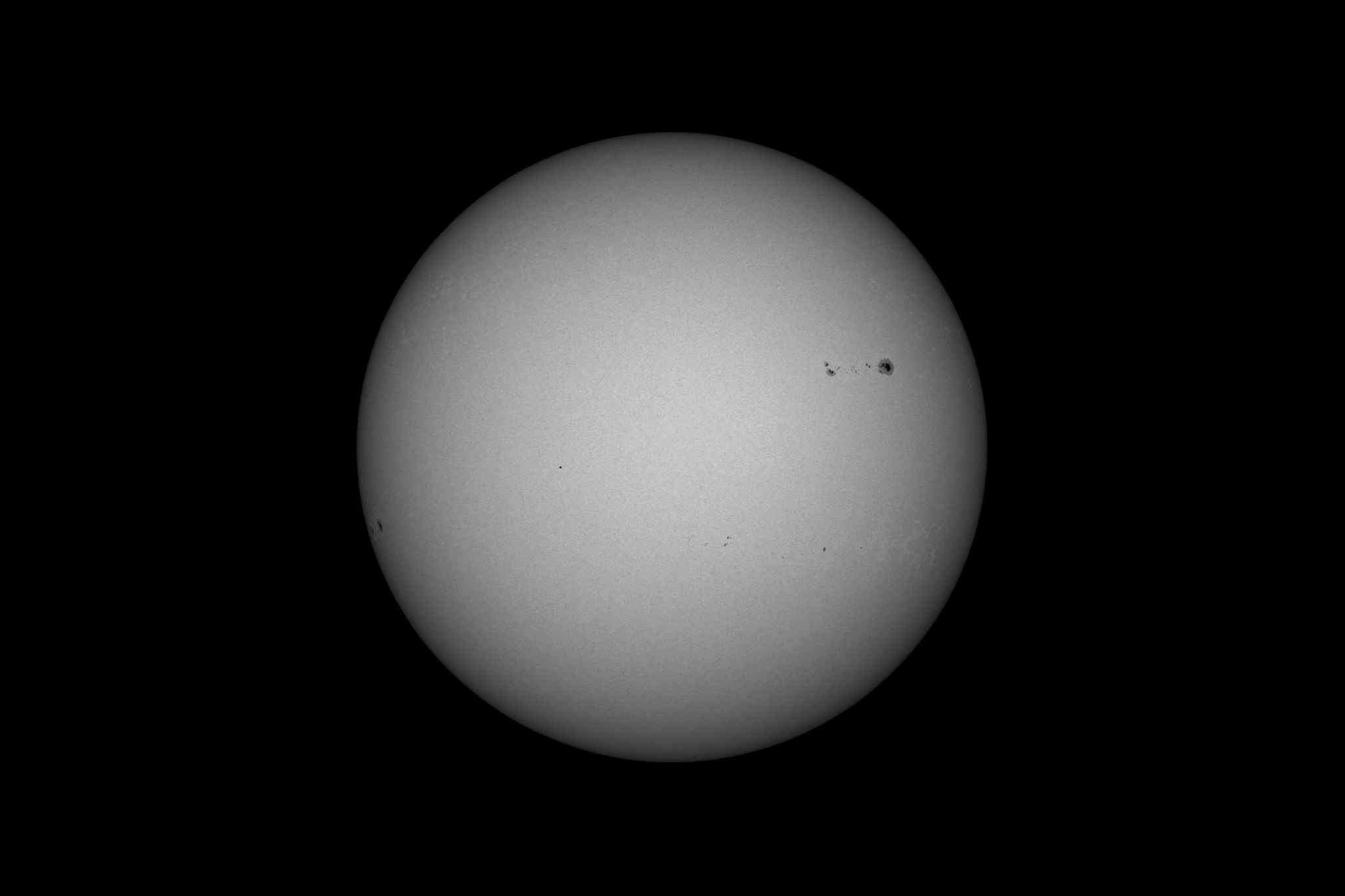 Endlich geschafft! Nach monatelangen Planungen, Konstruieren und Berechnungen heute First Light meines Intes 150/900 MN für die Sonne und der VIP Barlow 2x von Baader. Trotz sehr ruppigen Windes, der heftige Schwingungen erzeugte, glaubte ich zunächst, Aufnahmen wären heute noch möglich. Zum Nachmittag legte er sich jedoch deutlich und ich konnte eine Serie von Aufnahmen machen. Ich war verblüfft, dass ich in den RAWs keinerlei Dellen oder Einbuchtungen von schlechtem Seeing am Sonnenrand sah. Selbiger gestochen scharf! Selbst die kleinsten Flecken rattenscharf. Der Baader- Kontinuumfilter 540 nm spielt auch am Spiegel voll seine Stärke aus … obwohl für Refraktoren gedacht …