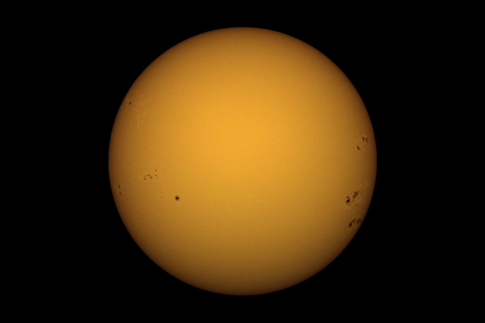 Endlich Urlaub… :) Die Sonne heute … Noch mal die großen Fleckengruppen AR 3712, 3713 und 3716 (von unten nach oben) kurz vor ihrem Verschwinden am Westrand der Sonne erwischt. Das Wetter vereitelte bisher jeden Versuch seit ihrem Auftauchen … Das Seeing war ziemlich schlecht, zweimalige manuelle Vorsortierung der schärfsten Bilder vorgenommen…