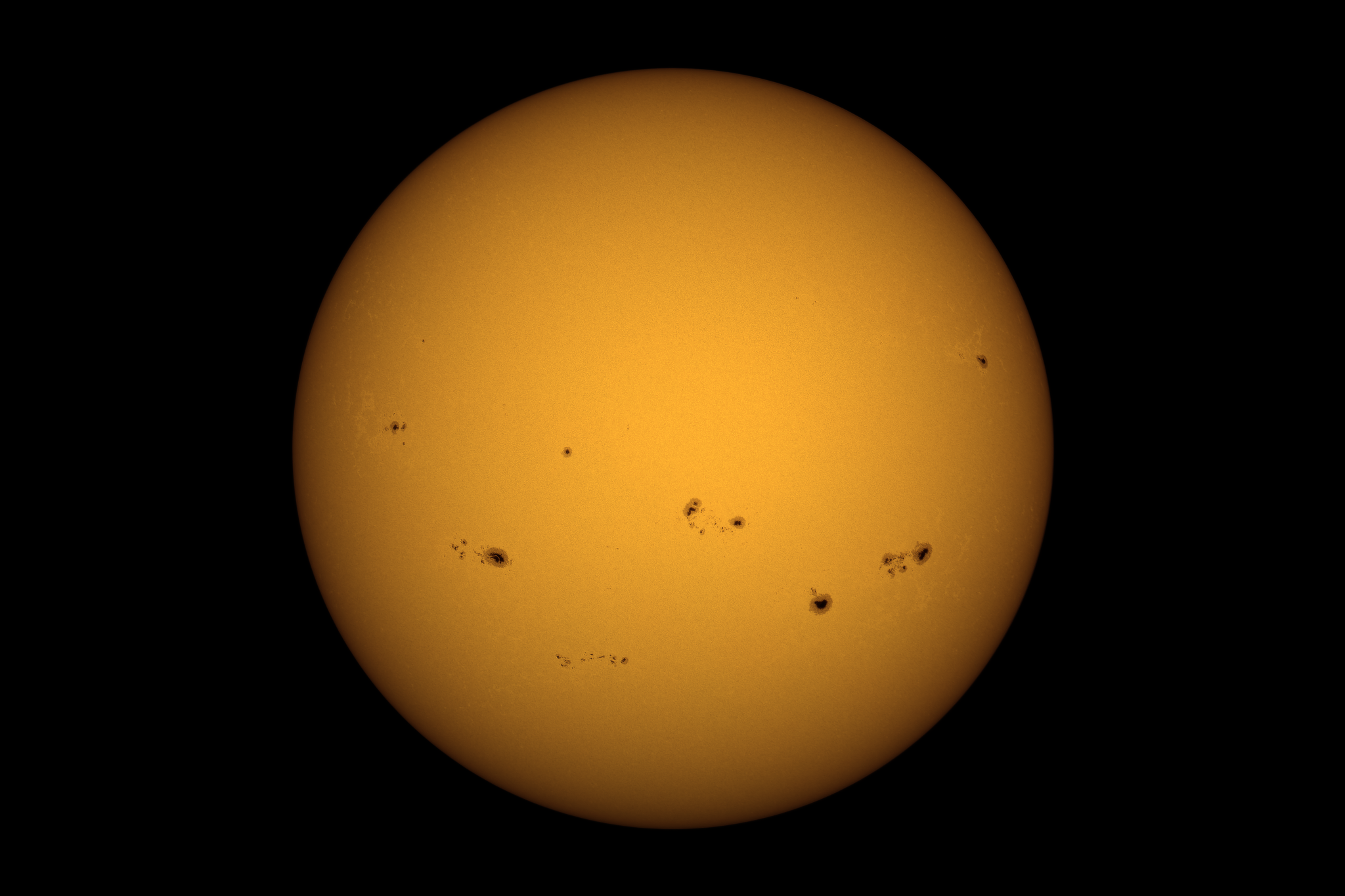 Für ein Sonnefoto hat es heute doch noch mal gereicht – bei super Transparenz und Seeing. Bevor es Anfang nächster Woche nach Dänemark für eine Woche geht… Ein faszinierender Anblick eines Sonnenfleckenmaximums, dominierend derzeit von der Südhalbkugel der Sonne. Zwei Dinge finde ich besonders interessant: die Lichtbrücke in AR 3799, der großen Gruppe links, welche genau durch die Umbra des großen Hauptflecks verläuft. Des weiteren die südlichste Gruppe AR 3800, bestehend aus vielen kleinen Flecken, aufgereiht wie an einer Perlenkette. Diese Gruppe liegt 27° südlich des Sonnenäquators. In einer relativ hohen solaren Breite. Man könnte daher meinen, es handele sich um eine neue, erste Gruppe des 26. Sonnenzyklus. Dem ist jedoch nicht so. Der 25. Zyklus könnte somit durchaus noch recht lange dauern…