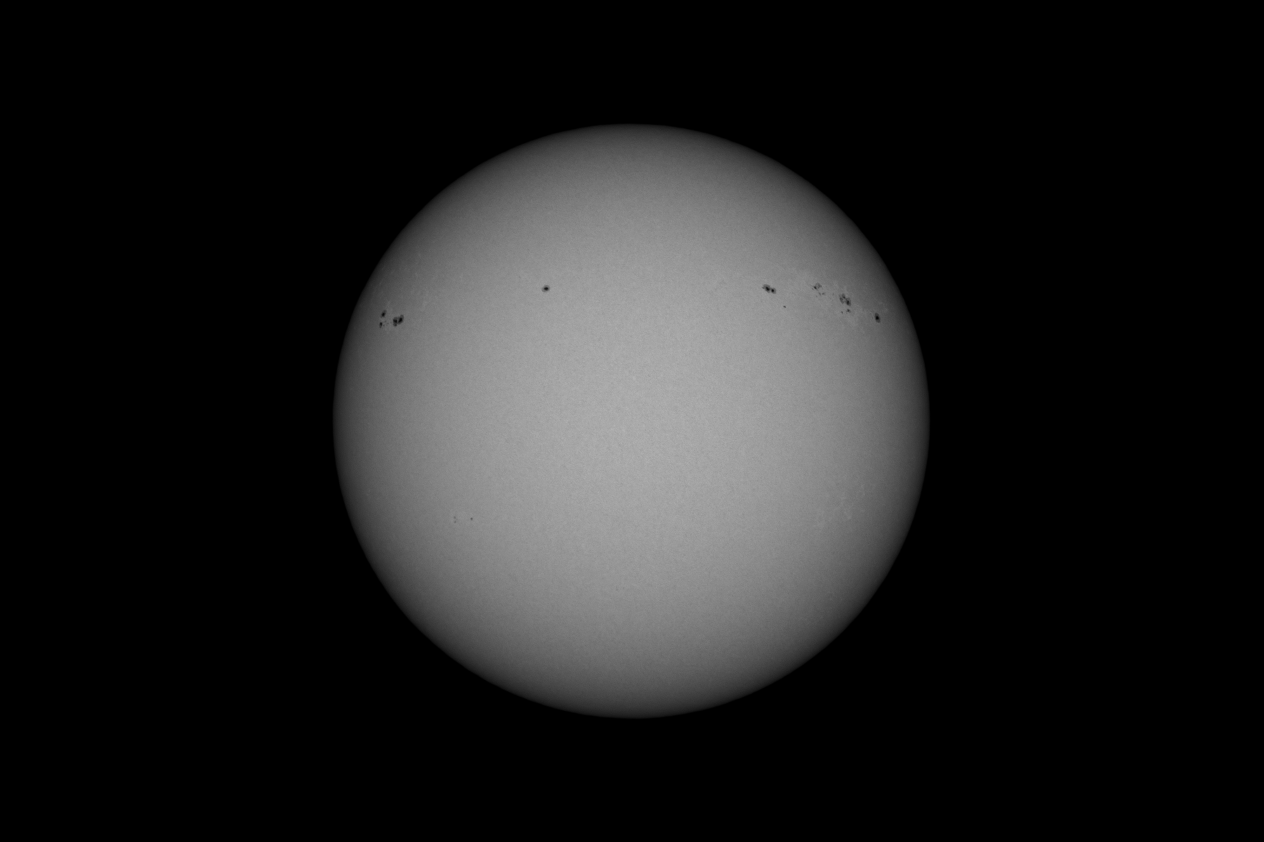 Eine interessante Aufreihung von Fleckengruppen entlang ähnlich eines Breitenkreises auf der Nordhalbkugel der Sonne. Ich konnte ein großes wolkenfreies Gebiet zum Aufbau der Technik ausnutzen. Die Südhalbkugel war bis auf AR 3175 recht ereignis- bzw. fleckenlos.