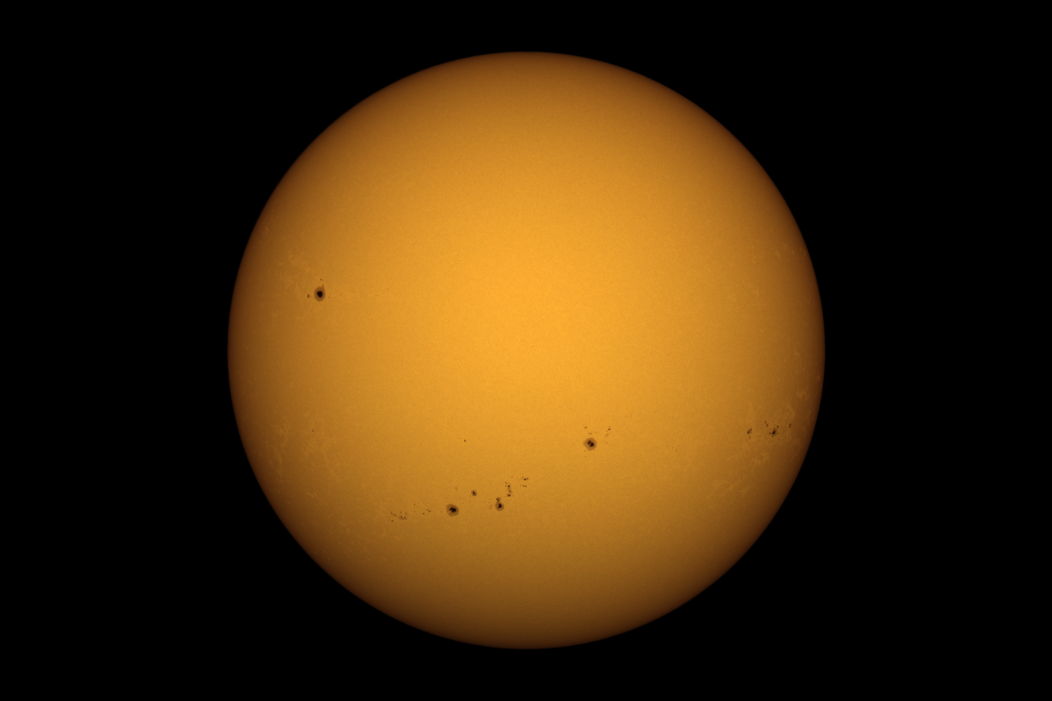 Die Sonne zeigt mit AR 3814 wieder ein wenig Aktivität auf der seit längerer Zeit inaktiven Nordhalbkugel. Schön auch die Lichtbrücke in AR 3811. Wahrscheinlich das letzte Bild der Sonne für einen längeren Zeitraum, bevor nächste Woche Starkregen einsetzen wird ... Die Veränderung in der Atmosphäre war auch am deutlich schlechteren Seeing zu bemerken. Aufgrund der extremen Trockenheit hier in Sachsen wird aber auch der jetzt anstehende Regen mal wieder dringend gebraucht … Trotz des schlechten Seeings waren 19 Bilder recht gut, die zum Summenbild addiert wurden.