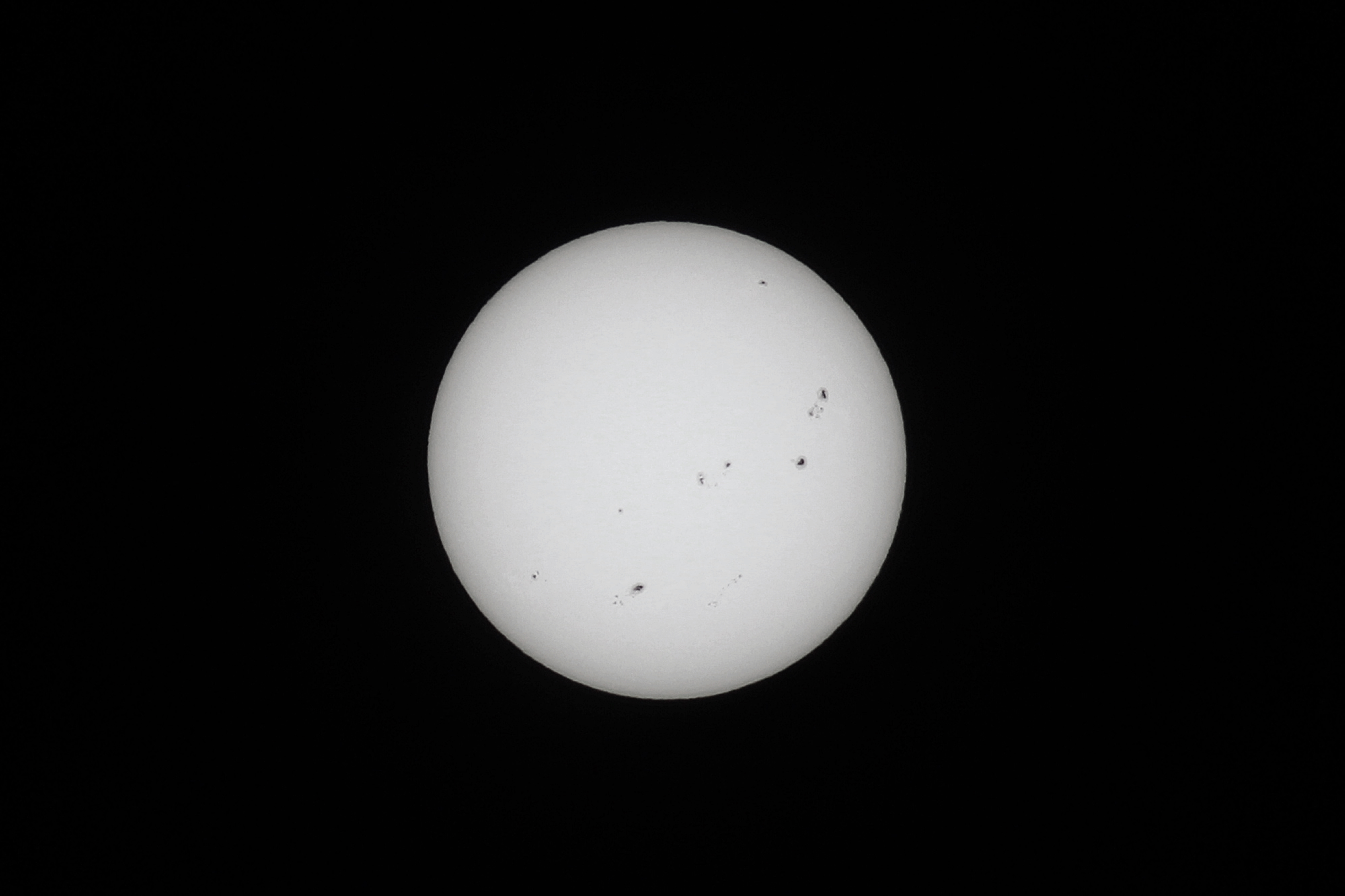 Die Sonne im Weißlicht mit vielen Sonnenflecken von meiner Balkonsternwarte fotografiert.
