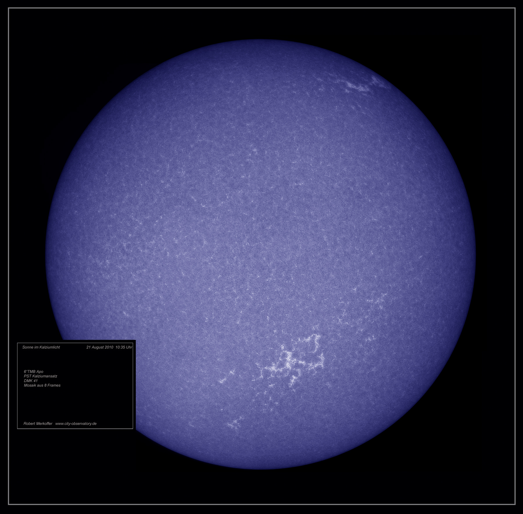 Bei meinem ersten Versuch, eine Mosaikaufnahme von der Sonne im Kalziumlicht zu erstellen, hatte leider ich im Eifer des Gefechtes glatt einen Aussschnitt vergessen - deshalb der eingesetzte Text.