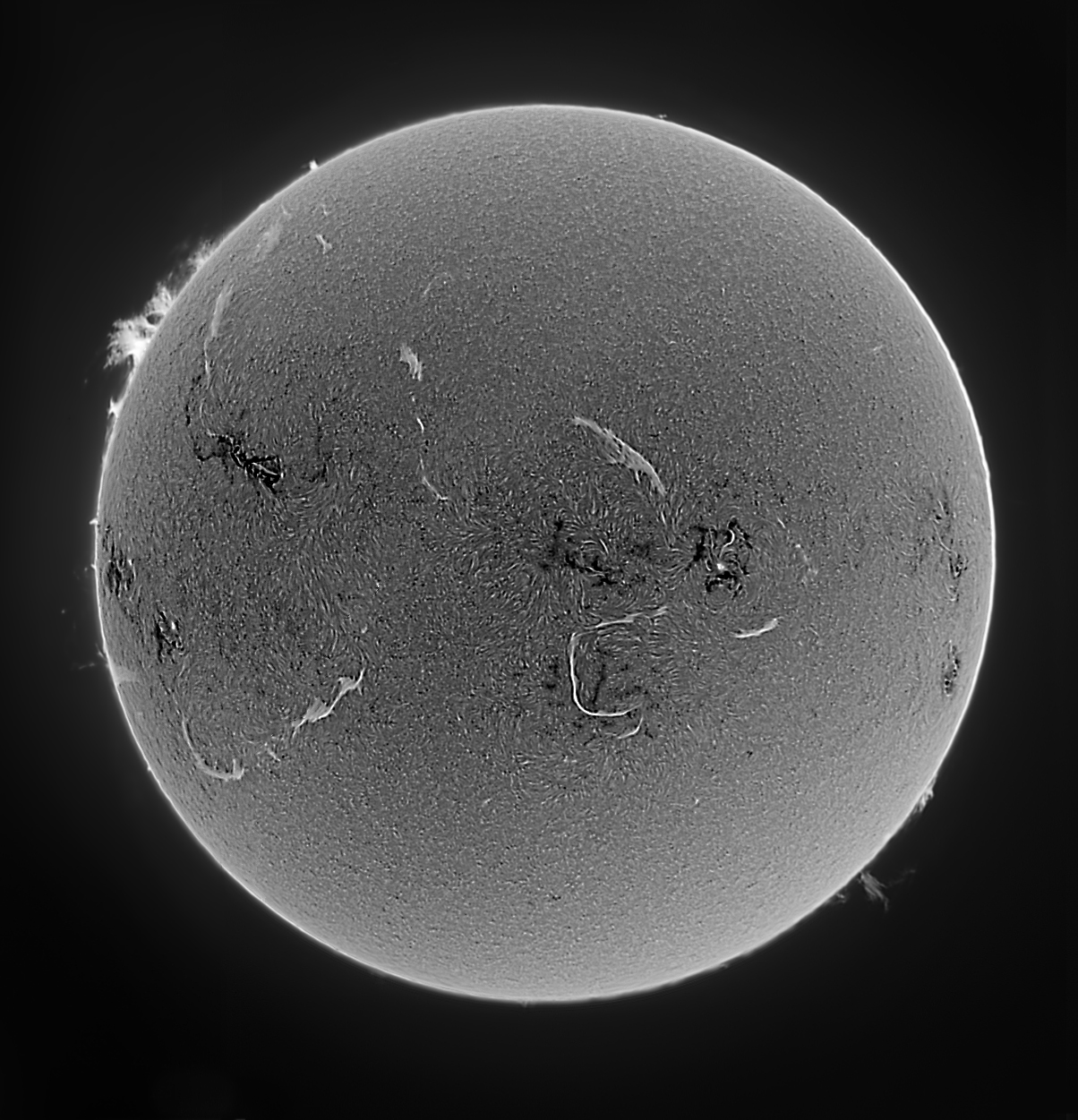 Dieses Bild entstand genau eine Woche später als das ebenfalls von mir eingestellte Bild vom 17. August. Die Aufnahme- wie auch Bildbearbeitungstechnik war dieselbe. Diesmal war aber mehr auf der Sonne los. Das Seeing war schlechter.