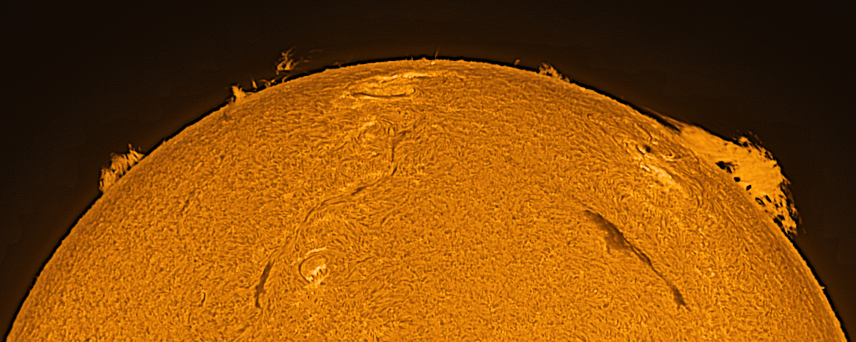 Die große Protuberanz am Westrand der Sonne. 180 von 5000 Bildern verwendet.