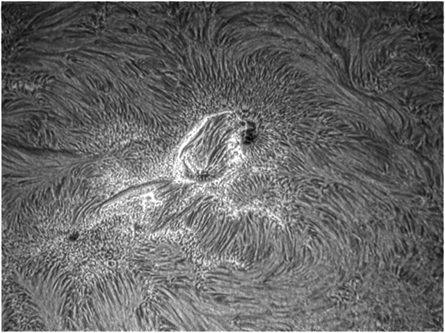 Ein Sonnenfleck im engbandigen H-alpha.