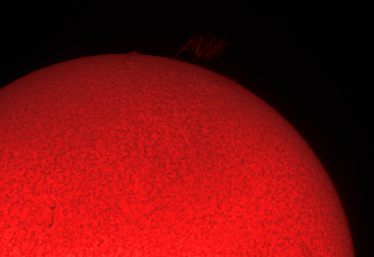 Am 2. April 2016 gab es auf der Sonne sehr schöne Protuberanzen zu sehen. Ich habe trotz der schlechten Bedingungen (Wind/Luftunruhe und leichter Dunst) ein paar Testaufnahmen gemacht, bei denen die Protuberanzen gut zu sehen sind.