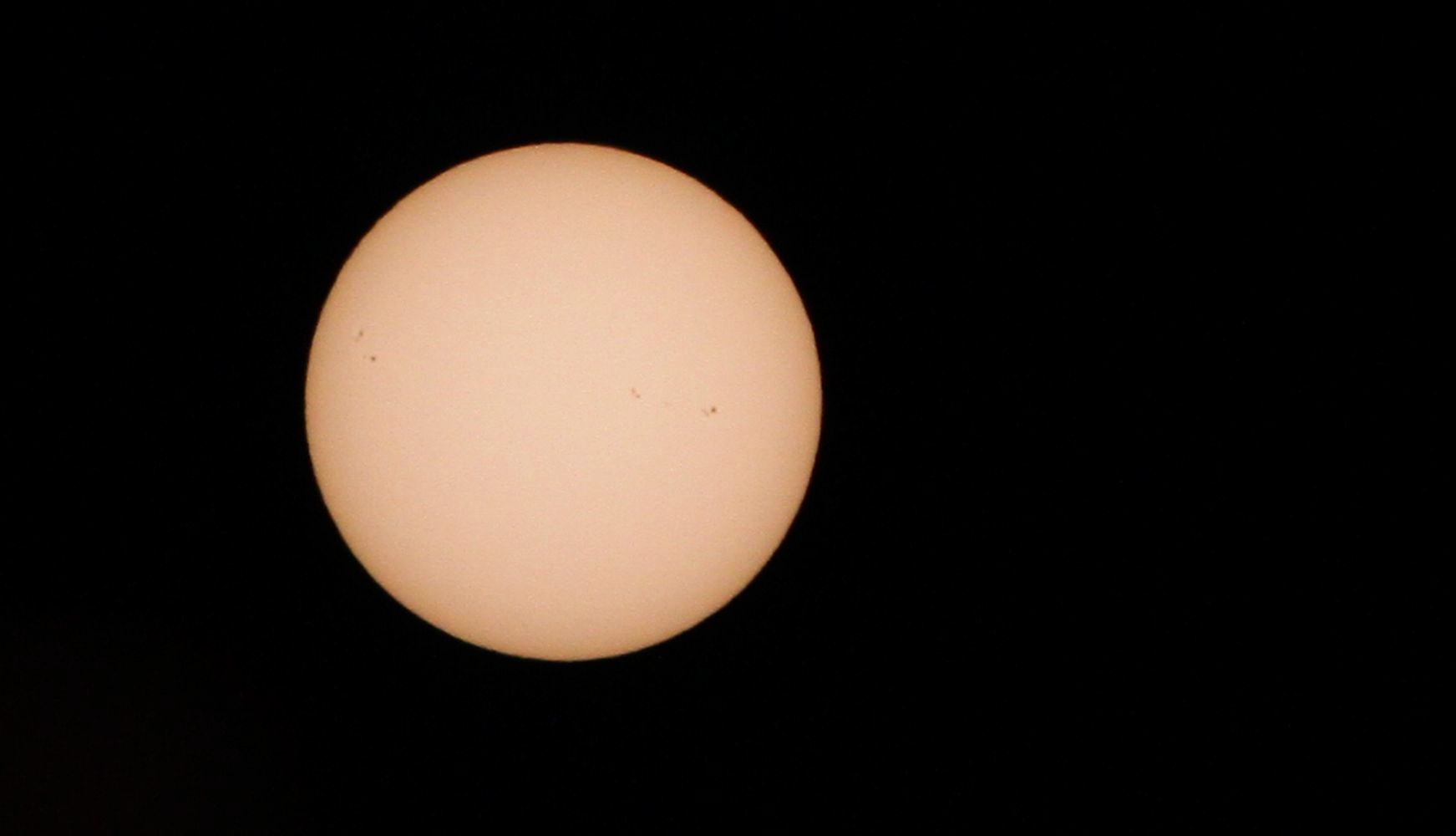 Hole schnell meine Canon EOS D7, dazu den Sonnenfilter, der sonst aufs Teleskop kommt, halte ihn vor die Kamera und mache einige Bilder frei Hand. Am Computer sehe ich dann etliche Sonnenflecken.