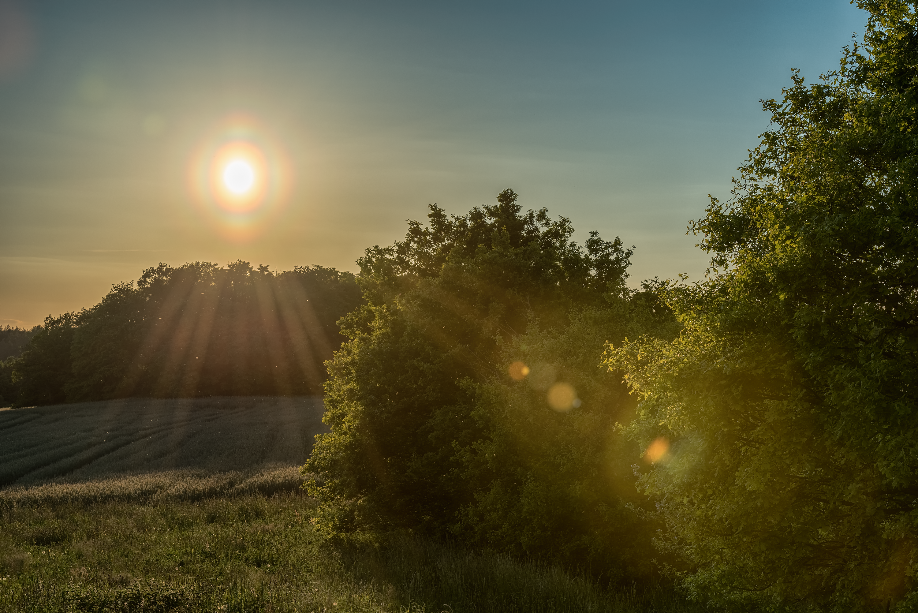 Ein Blick in die untergehende Sonne offenbarte, dass die Pollenkonzentration in der Luft noch immer extrem hoch ist. Wie gestern zeigte sich auch heute wieder eine farbige Pollenkorona. Das Foto ist ein HDR aus 7 Bildern, aufgenommen mit #Nikon D750 & Nikkor 70-200/2.8.