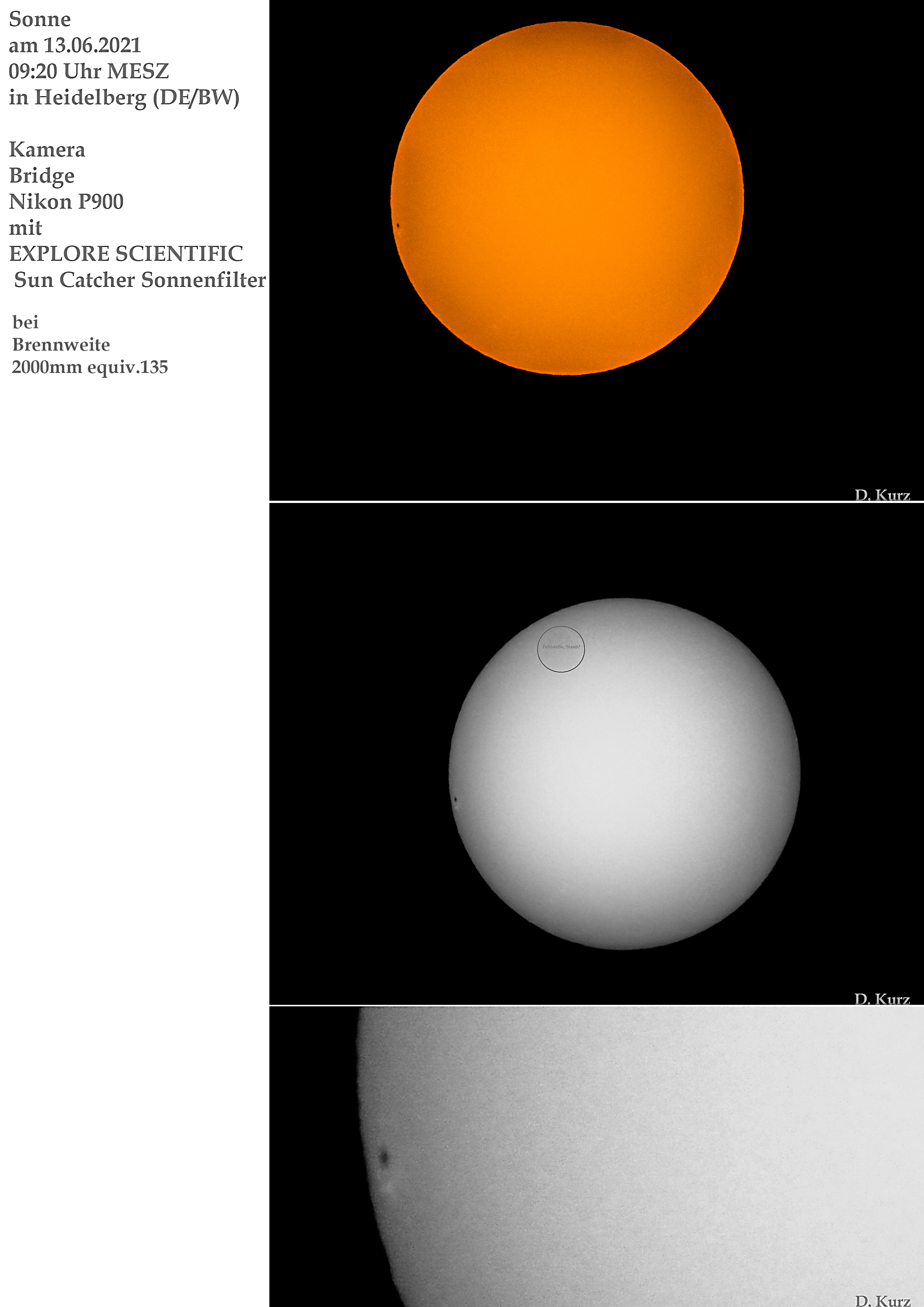 | Belichtungszeit | 1/200 s mit Explore Scientific Sun Catcher Sonnenfilter |