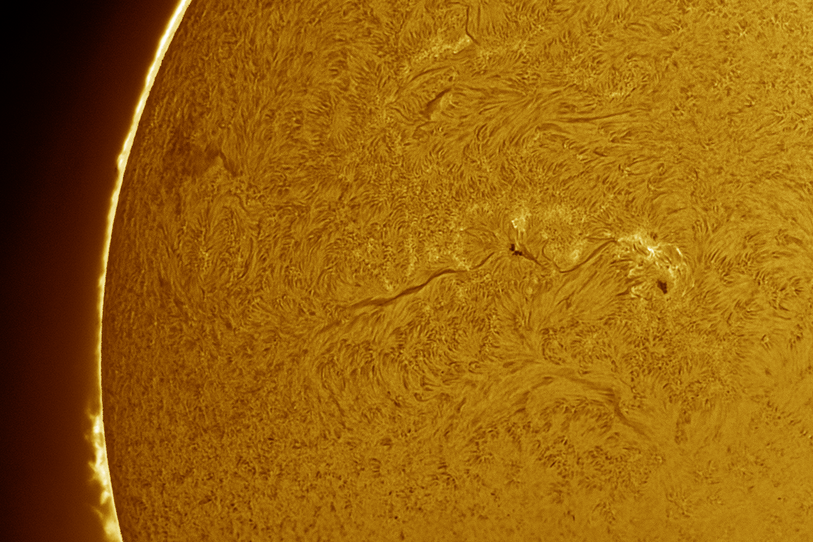 Die Sonne mit Ihrer dynamischen Chromosphäre und den spektakulären Protuberanzen ist immer wieder ein faszinierendes Fotomotiv. Am 6. März 2024 konnte ich ein paar Wolkenlücken zur Aufnahme nutzen.