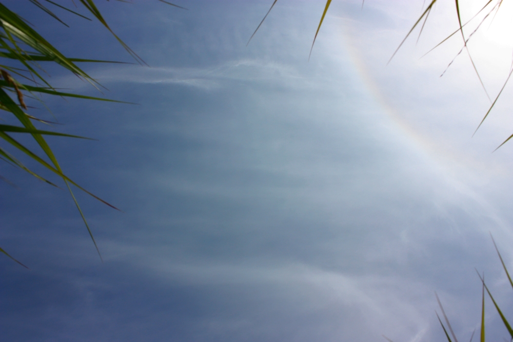 Bei einer Fahrradtour bei der letzten Schönwetterperiode, konnte ich bei leicht dunstigen Himmel - mehr aus Zufall - ein sehr deutlichen Sonnen Halo festhalten.