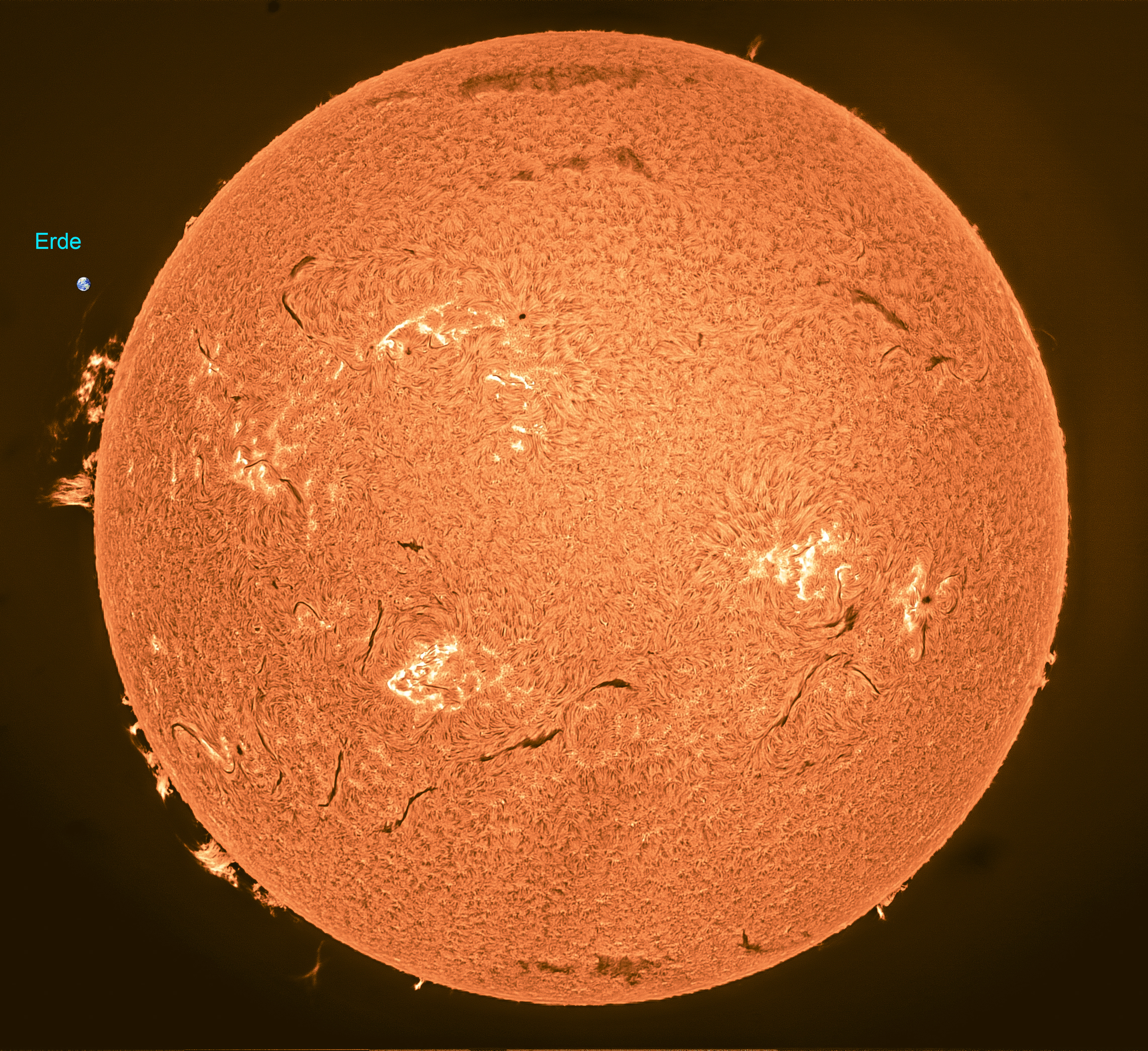 Interessante Entwicklung der Protuberanzen und der Sonnenoberfläche: Man sieht deutlich, dass wir auf das nächste Maximum zugehen. Wenn der Trend so anhält, freue ich mich schon jetzt auf die Polarlichter im kommenden Herbst und Frühjahr.