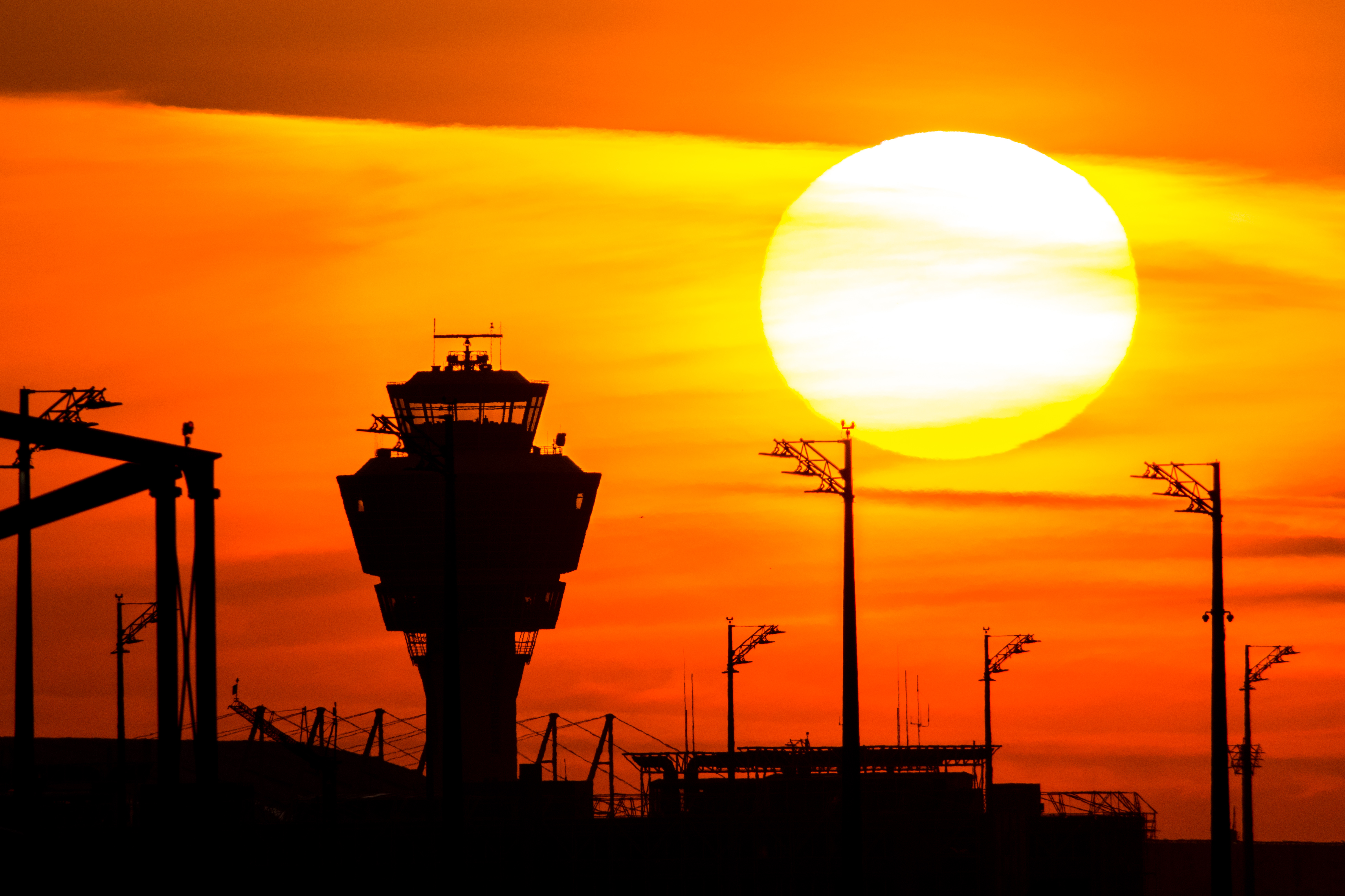 Am 24. April 2020 konnte ich den Sonnenaufgang am Flughafen München fotografieren. Aufgrund der Coronakrise ganz ohne Flugzeuge, lediglich die Sonne und der Tower.