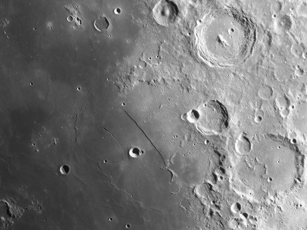 Den östlichen Teil des Mare Nubium schließt die "Lange Wand " Rupes Recta ab, eine Klippe von 120 km Länge und nur 300 m Höhe, westlich davon die Rima Birt, ein eingebrochener Lavakanal und gutes Testobjekt für Teleskope. östlich von beiden Thebit, und nördlich davon Alpetragius (das"Mond -Ei!!) und Arzachel mit Rille innerhalb des Kraterwalls.