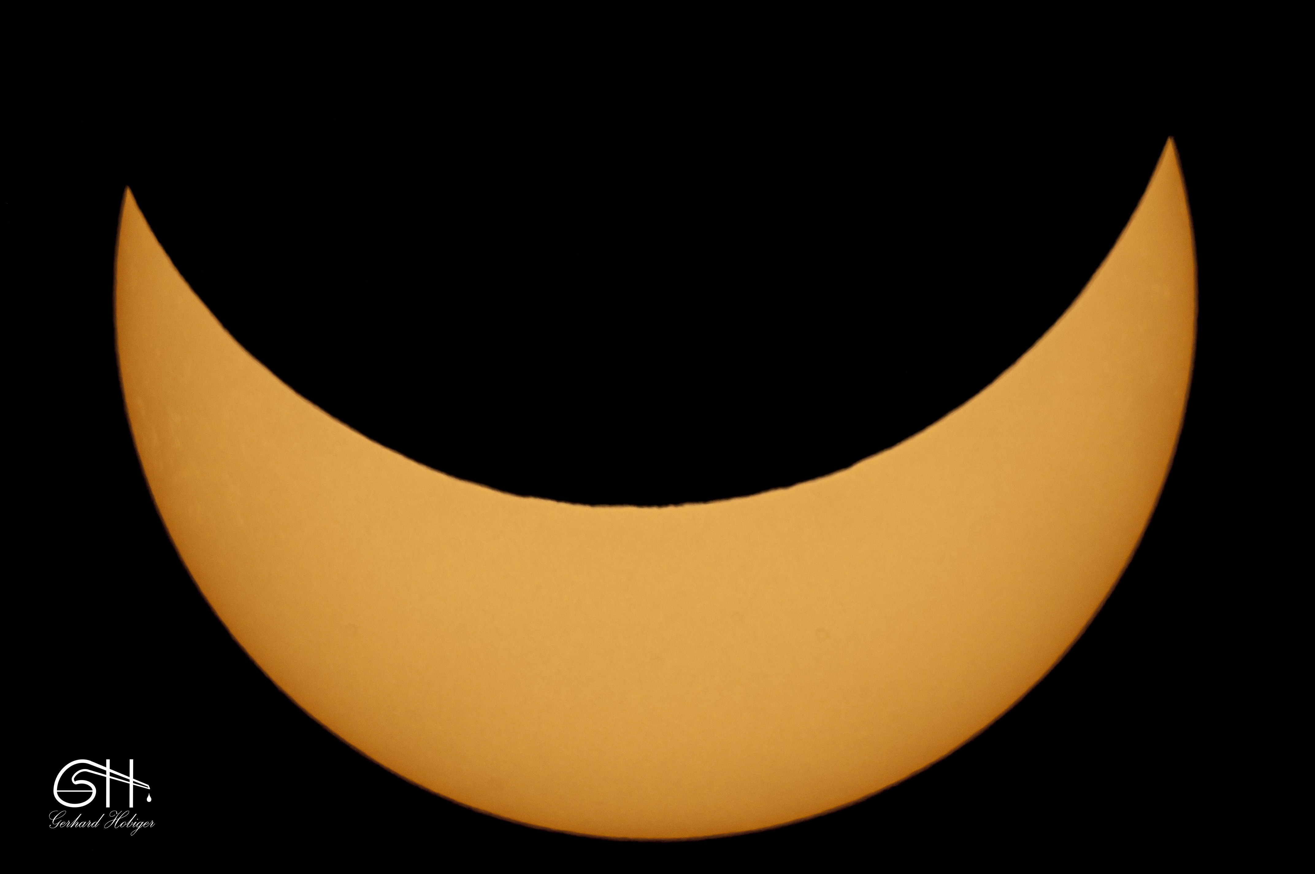 Das Bild entstand mit einem C8 in der maximalen Phase. Das Faszinierende daran ist, dass man das Mondrandprofil so deutlich sieht.