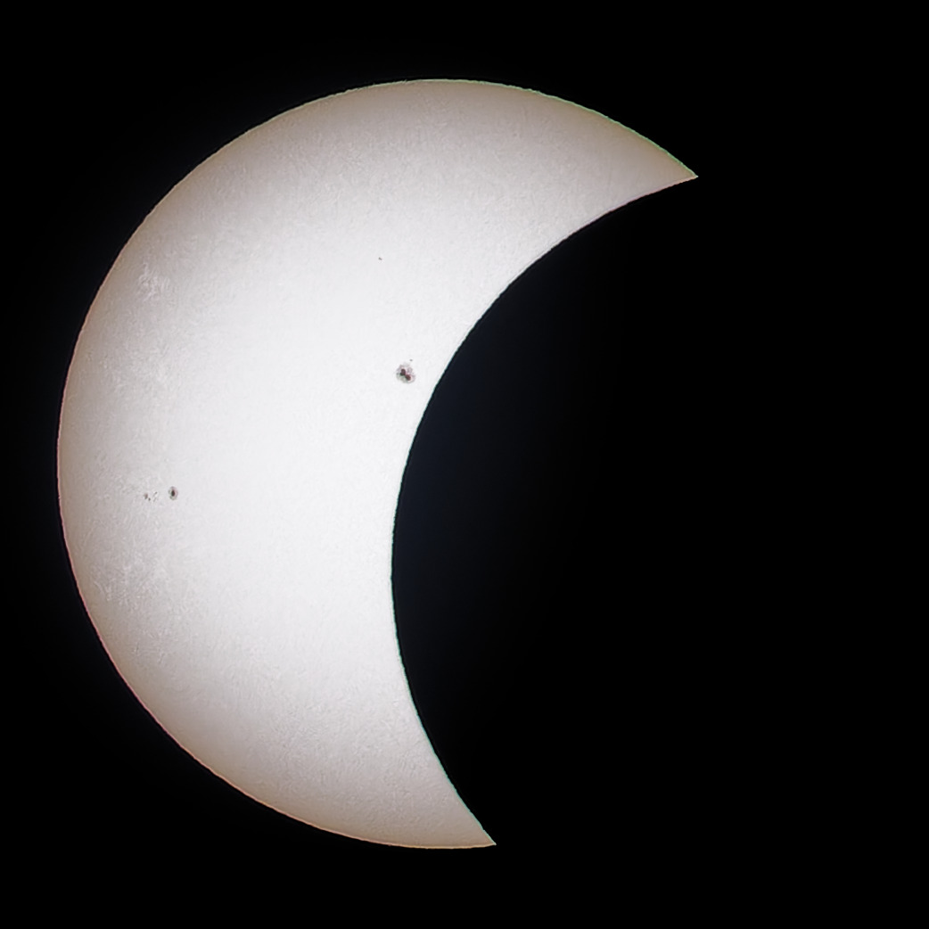 Auf der Sonne zeigten sich mehrere große Flecken, welche die beginnende Verfinsterung noch reizvoller erscheinen ließen.